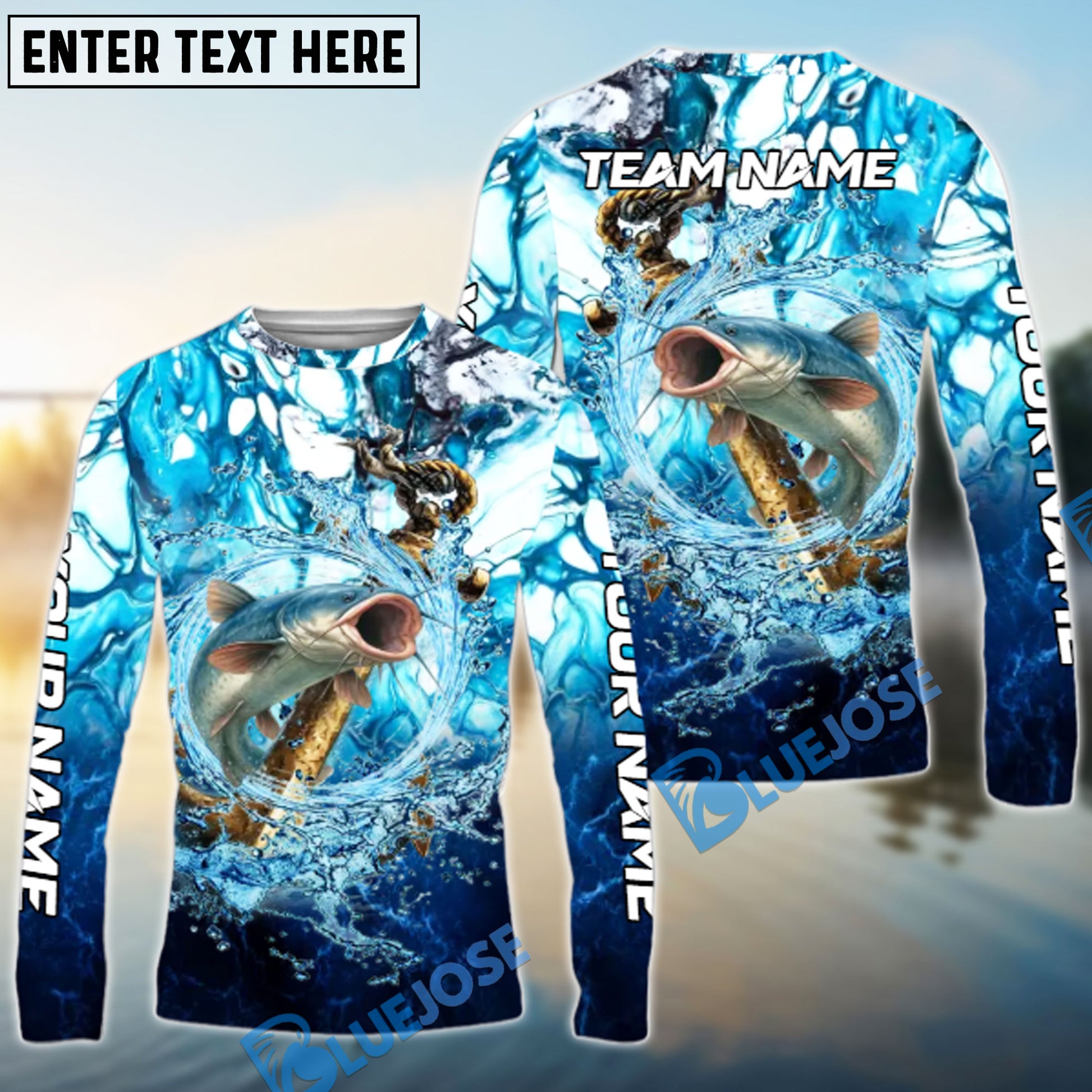 Bluejose Catfish Fishing Marble Tide Catch Name & Team Name 3D Shirts