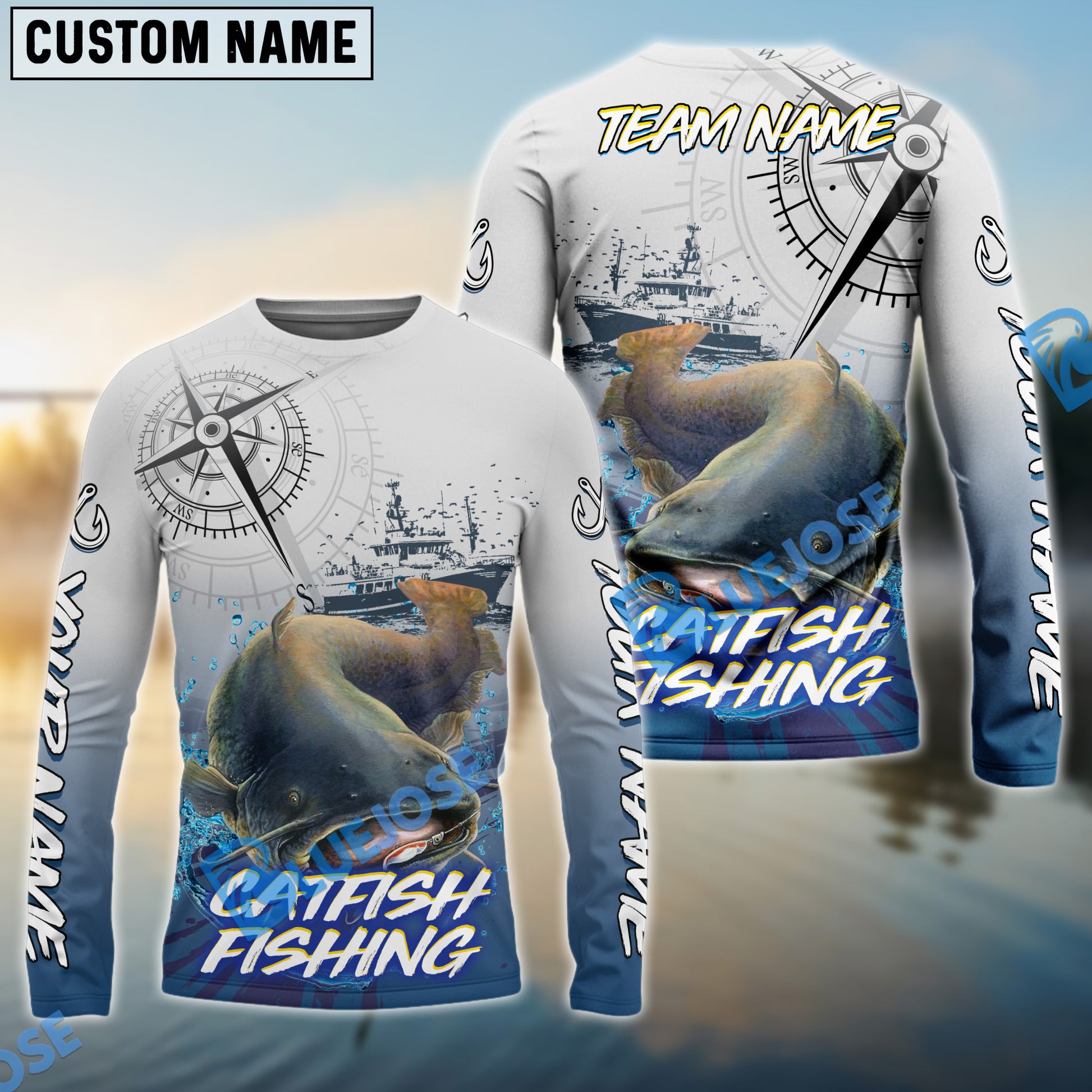 Bluejose Catfish Fishing Realistic Fish Compass Anchor Pattern Custom Name & Team Name 3D Shirts