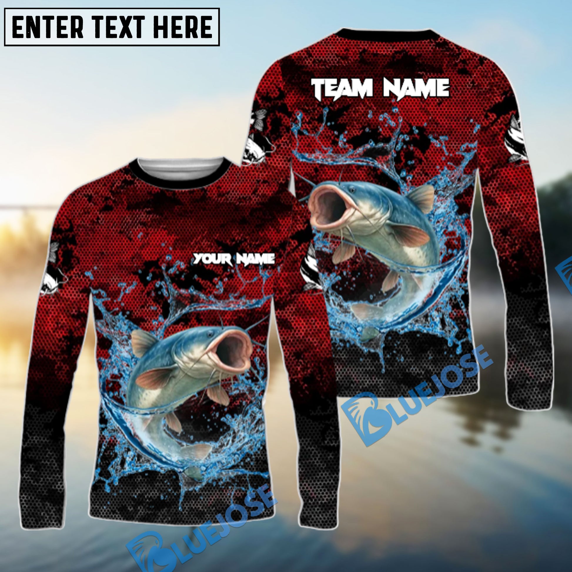 Bluejose Catfish Fishing Red Grunge Camo Design Name & Team Name 3D Shirts