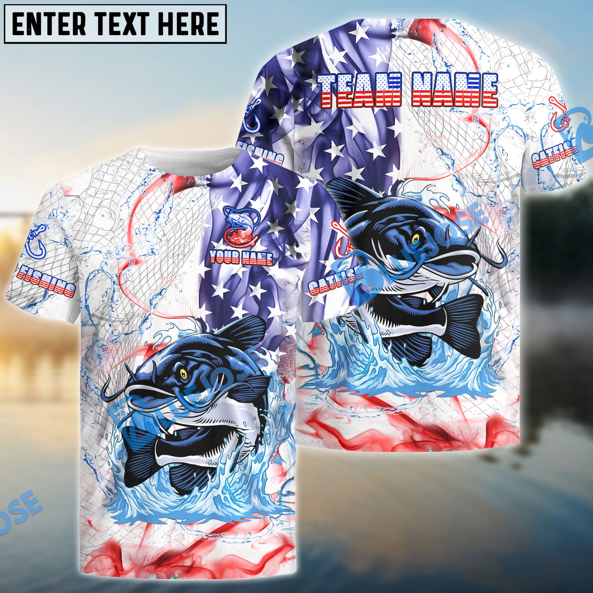 Bluejose Catfish Fishing US Flag Pattern Design Name & Team Name 3D Shirts