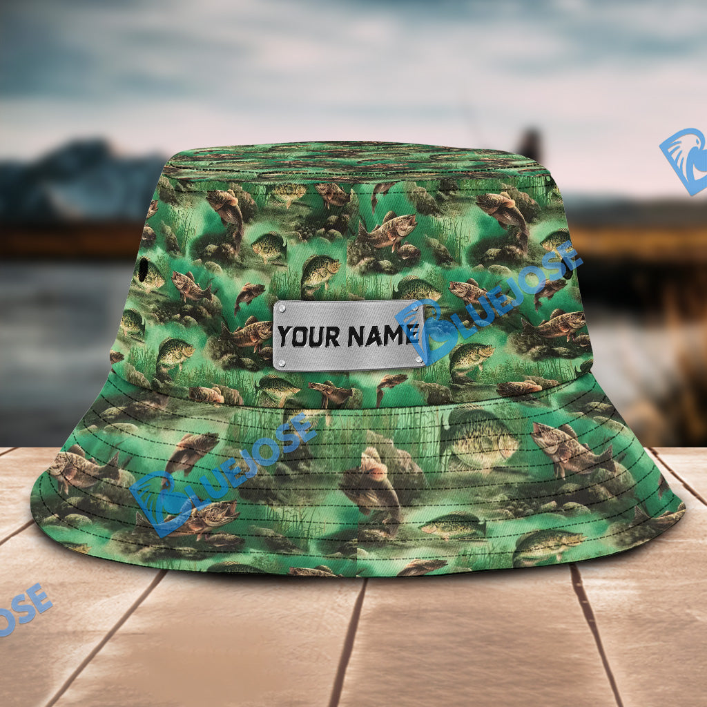 BlueJose Crappie Fish Pattern Custom Name Bucket Hat