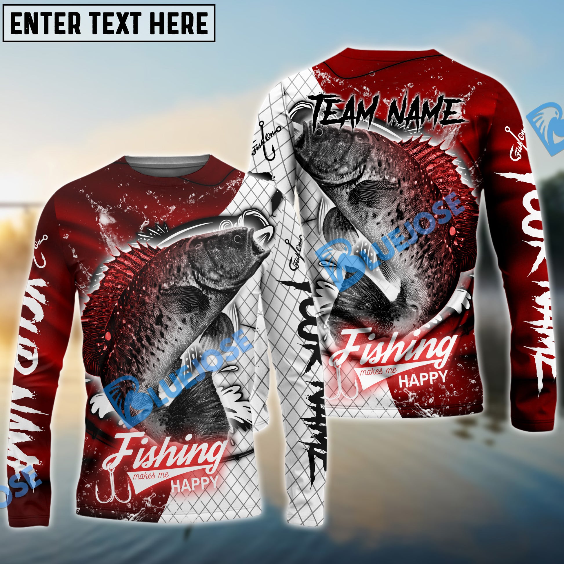 Bluejose Crappie Fishing Dark Red Skin Sport Custom Name & Team Name 3D Shirts