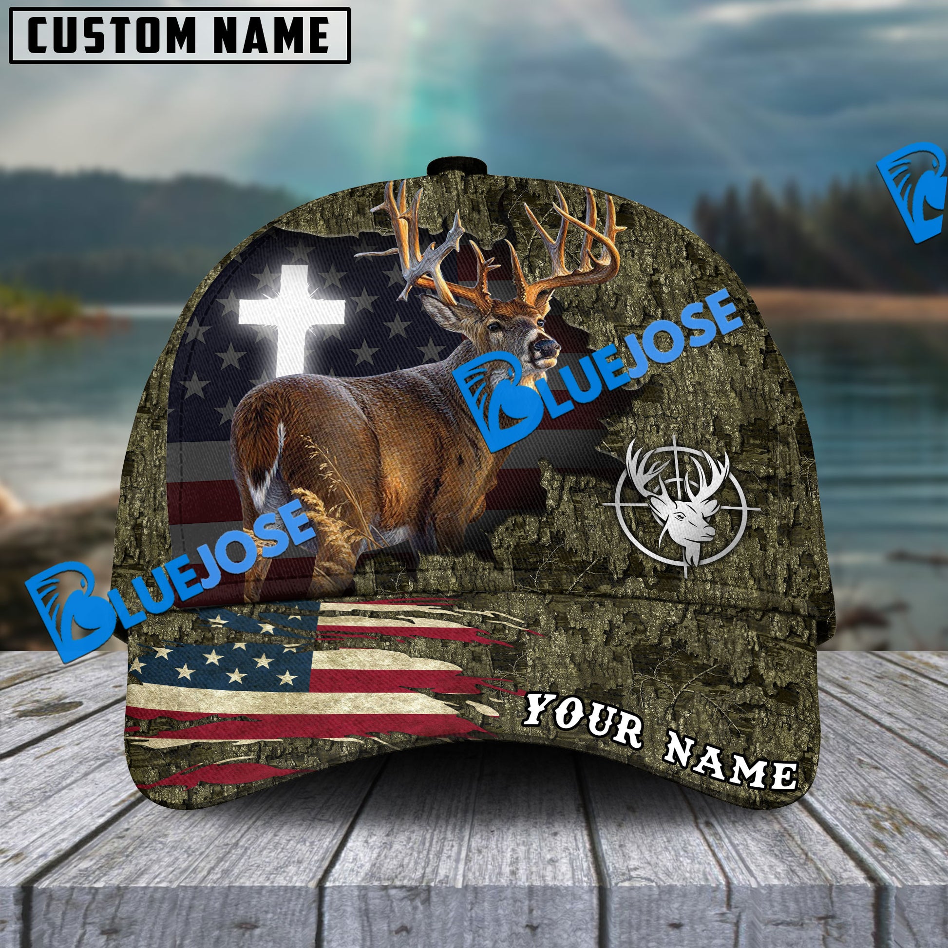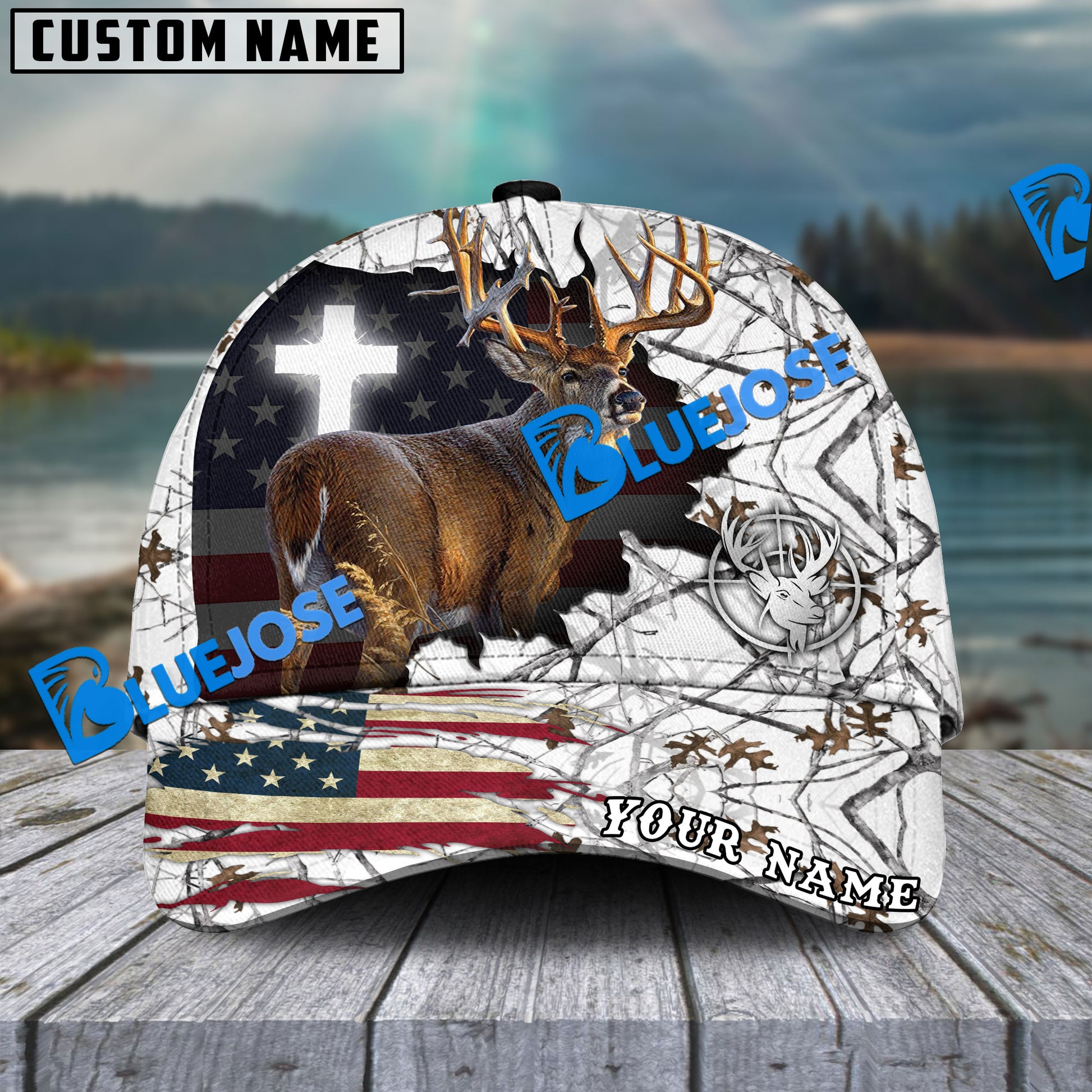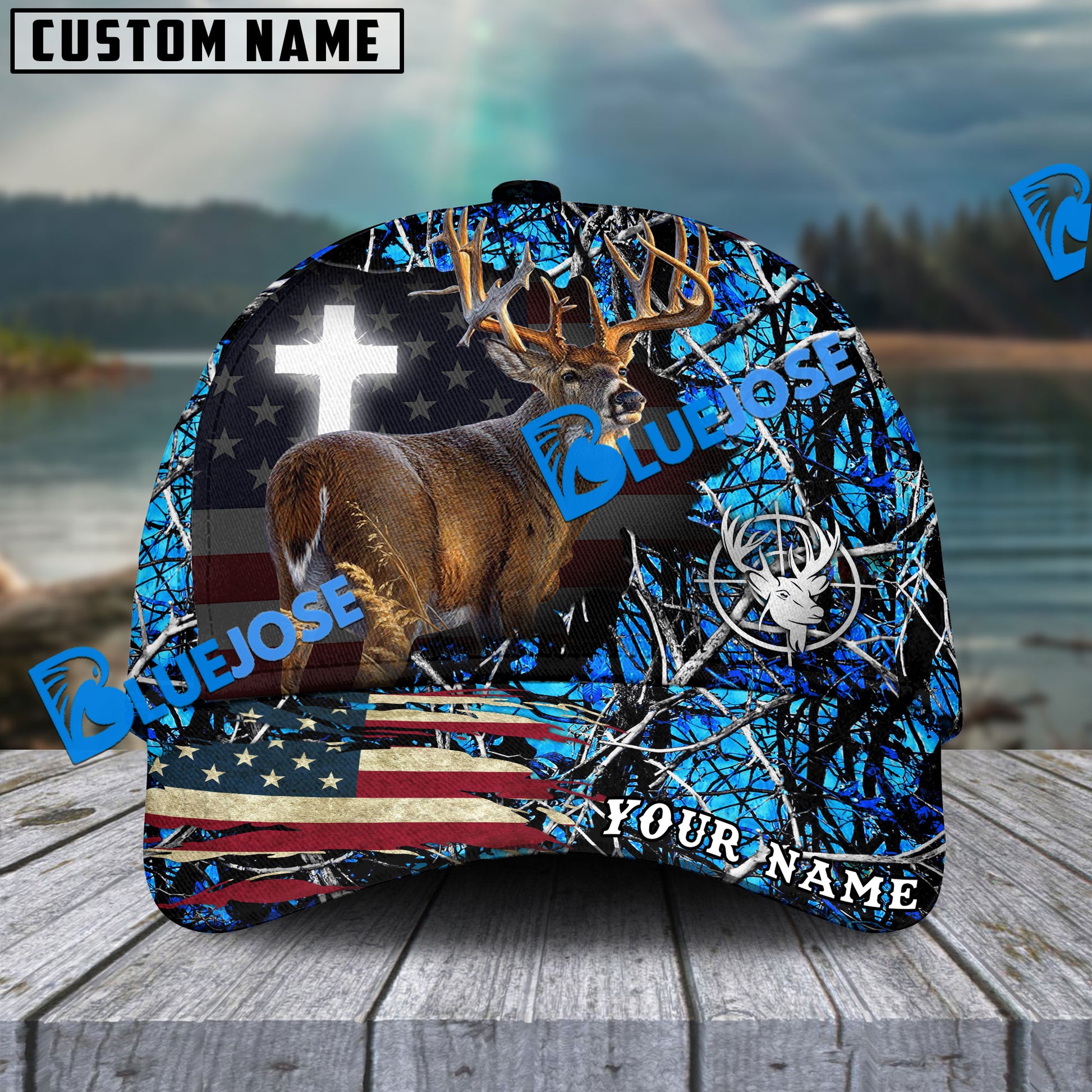 BlueJose Cross America Hunting Deer Crack Camo Pattern Multicolor Personalized Cap