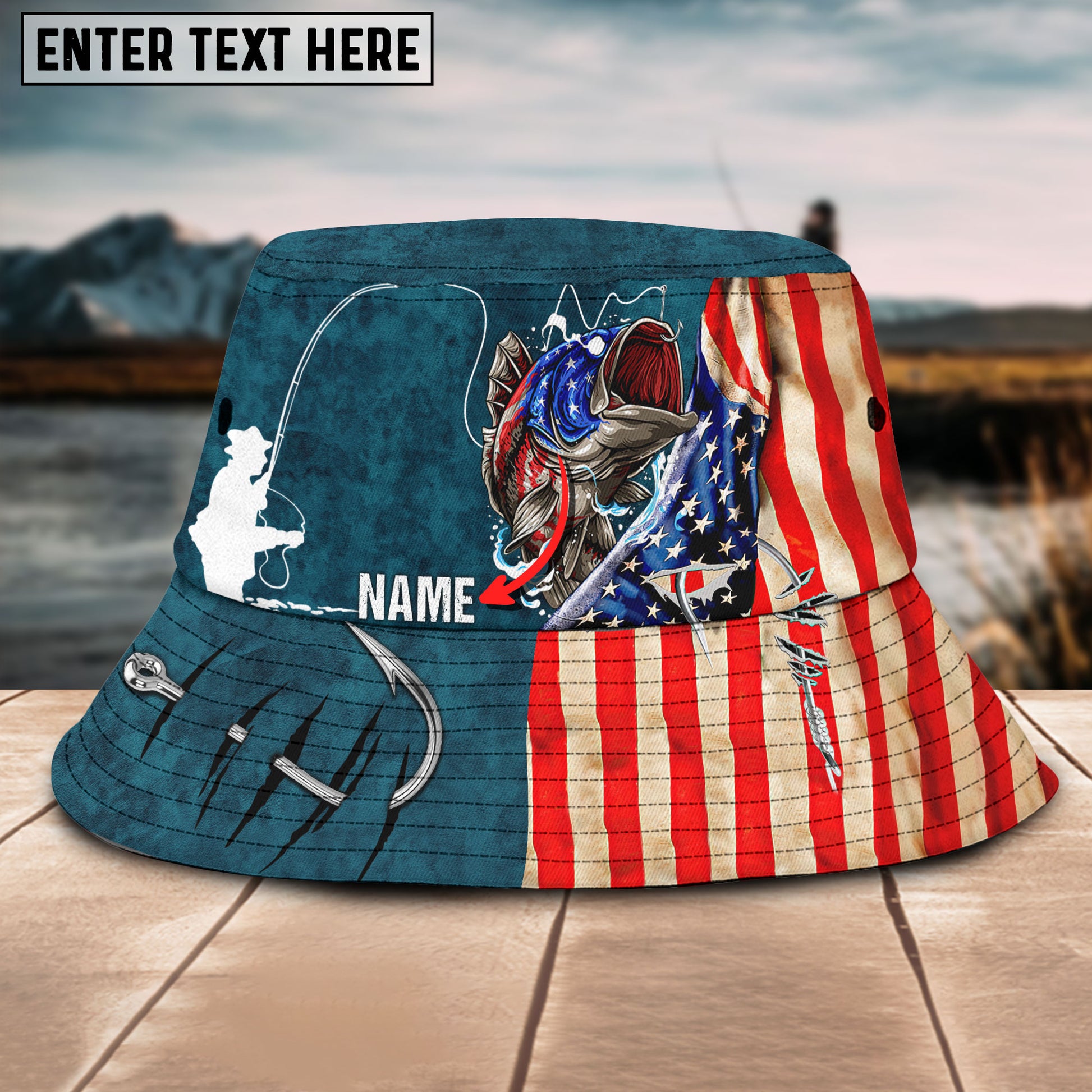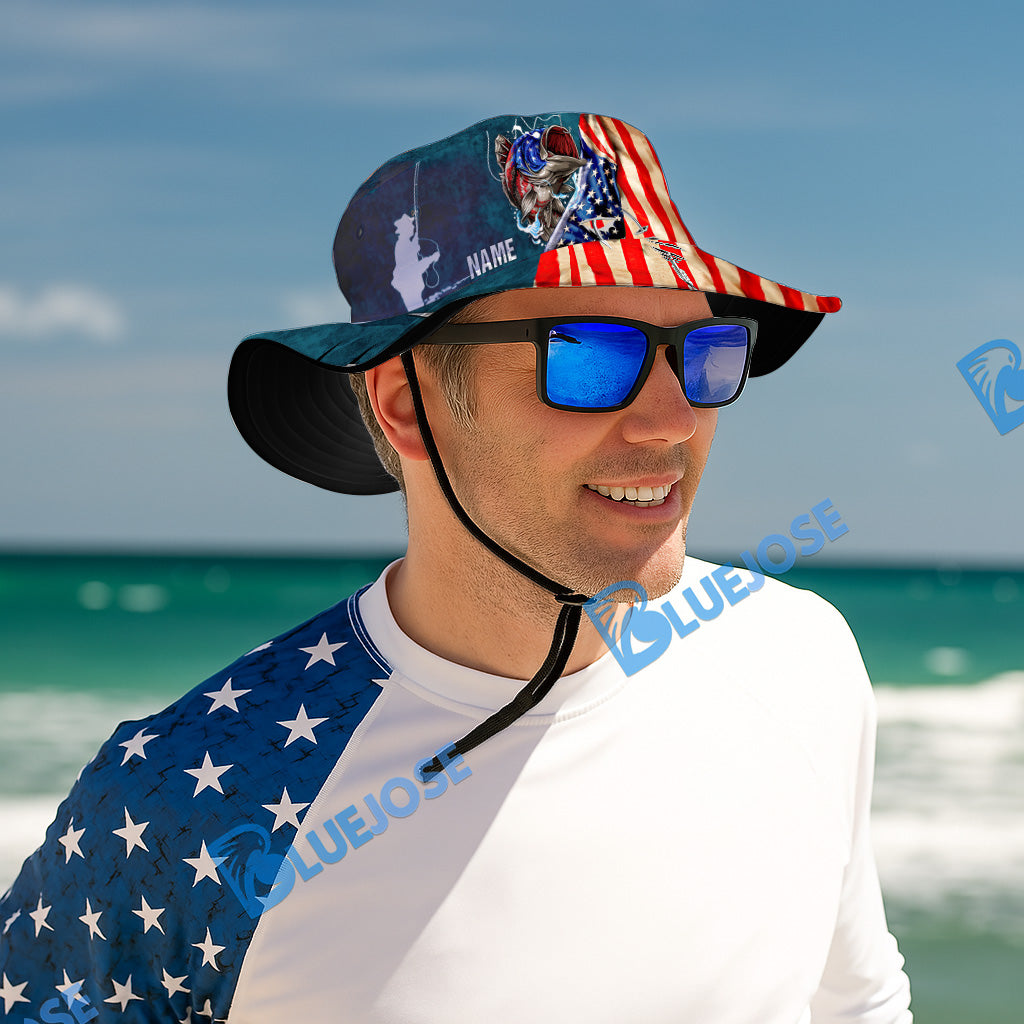 BlueJose Custom Name Bass Fishing Flag Print Bucket Fishing State Hat