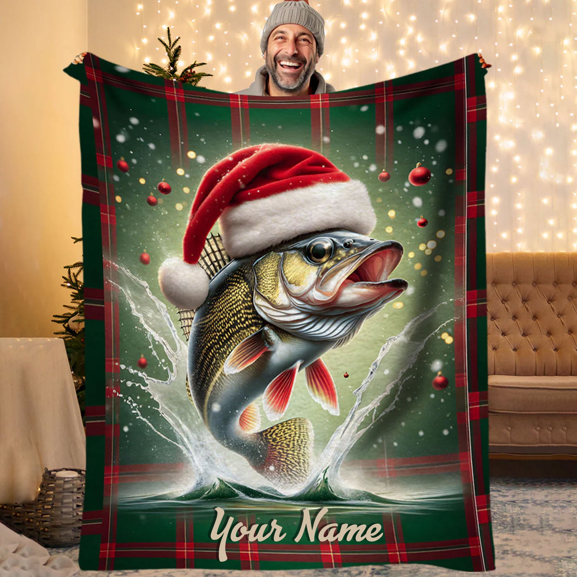 BlueJose Custom Name Christmas Walleye Fishing Blanket