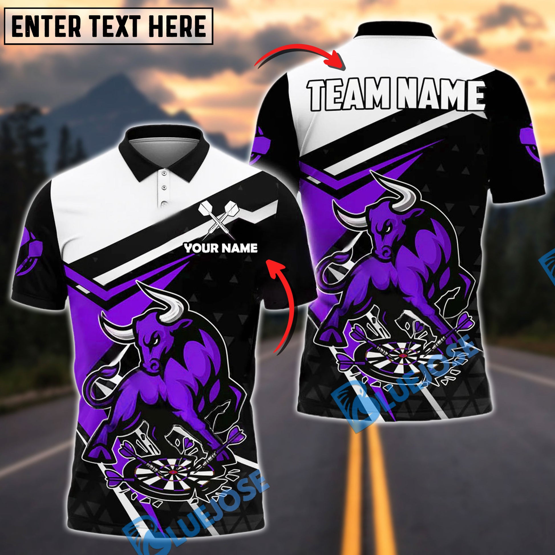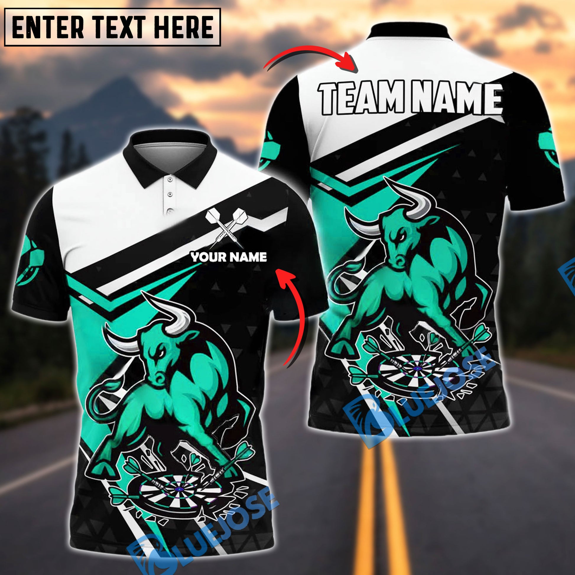 BlueJose Darts Aggressive Bull with Dartboard Personalized Name, Team Name Shirt (4 Colors)