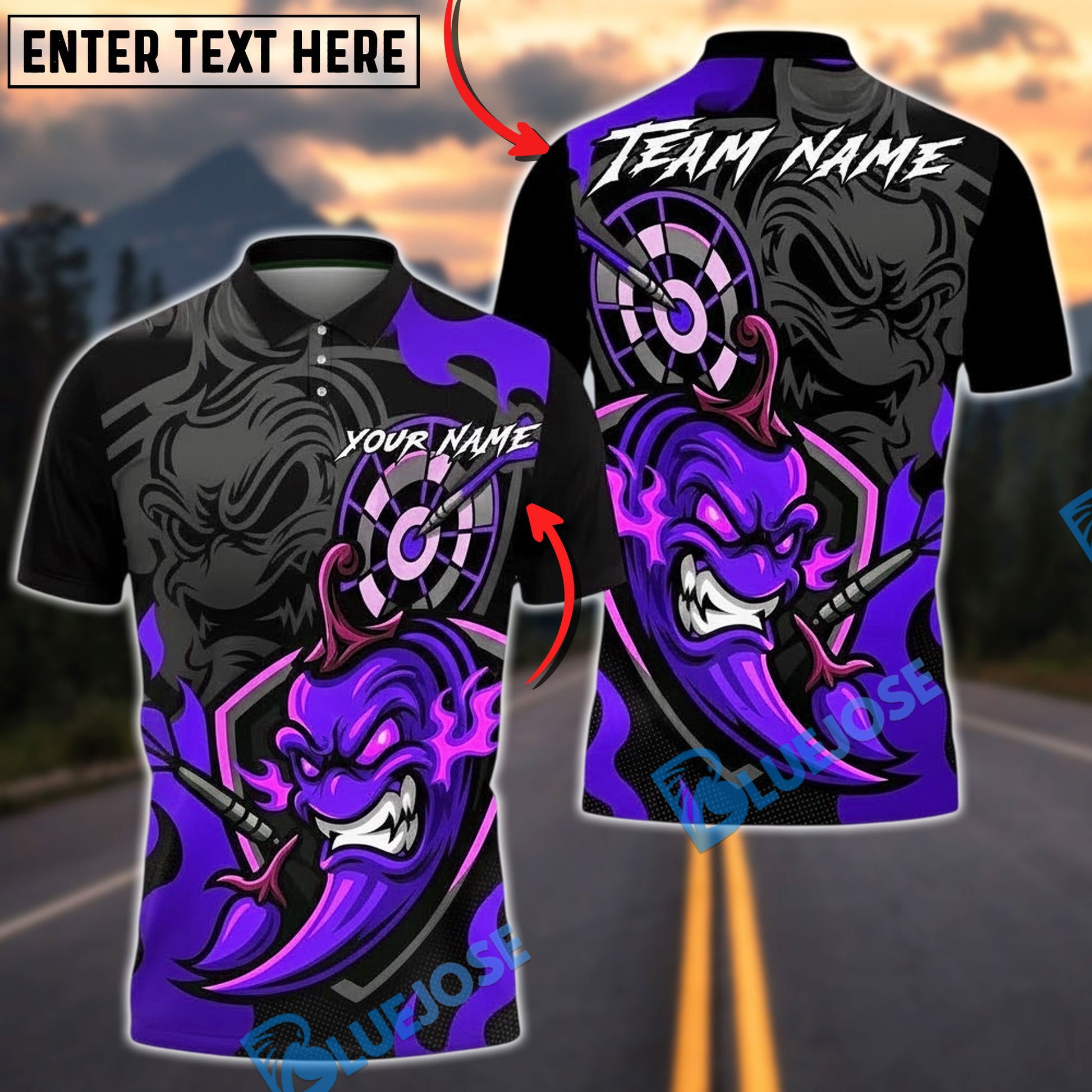 BlueJose Darts Angry Chili Flame Target Design Personalized Name, Team Name Unisex Shirt (4 Colors)