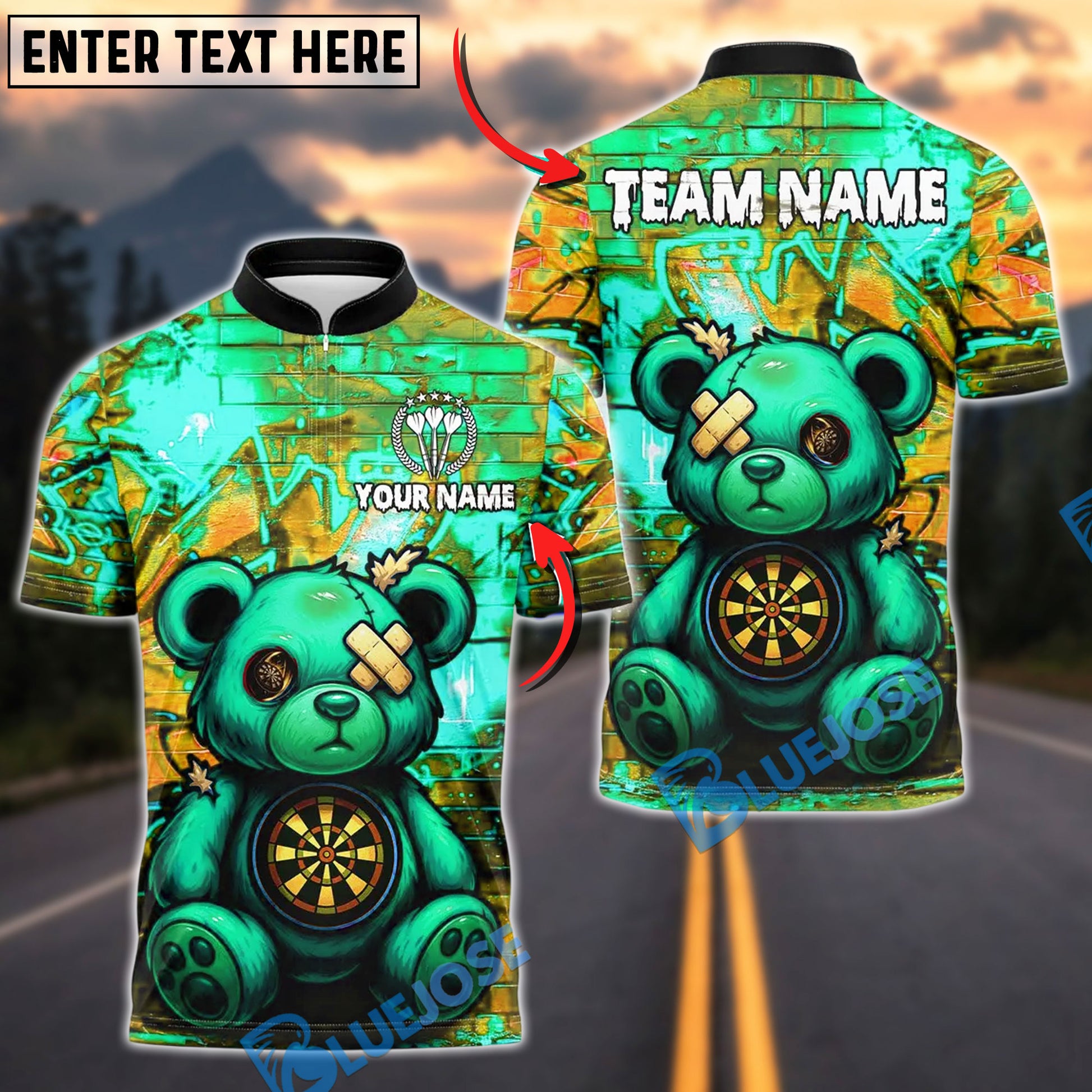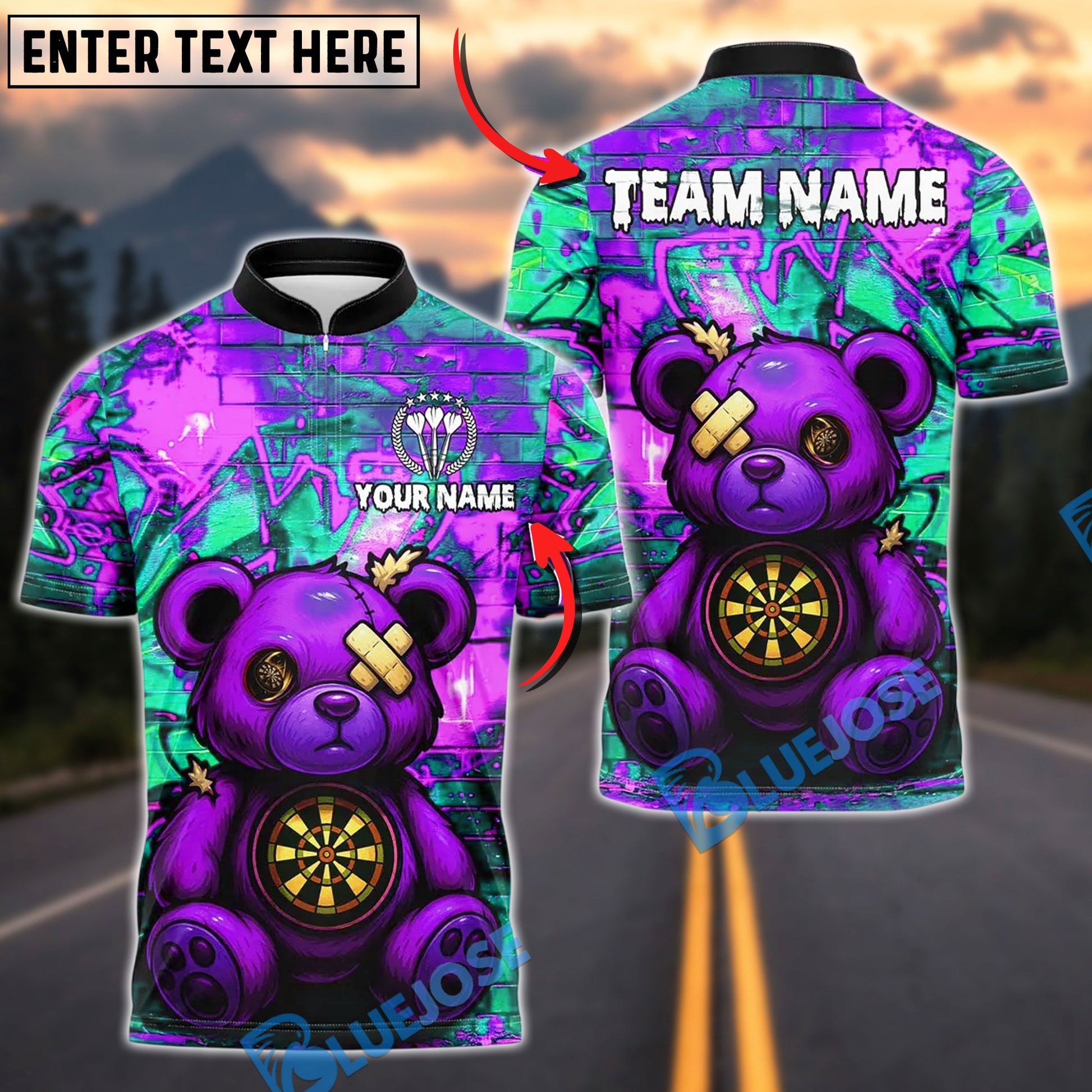 BlueJose Darts Bear Graffity Design Customized Name, Team Name 3D Shirt (4 Colors)