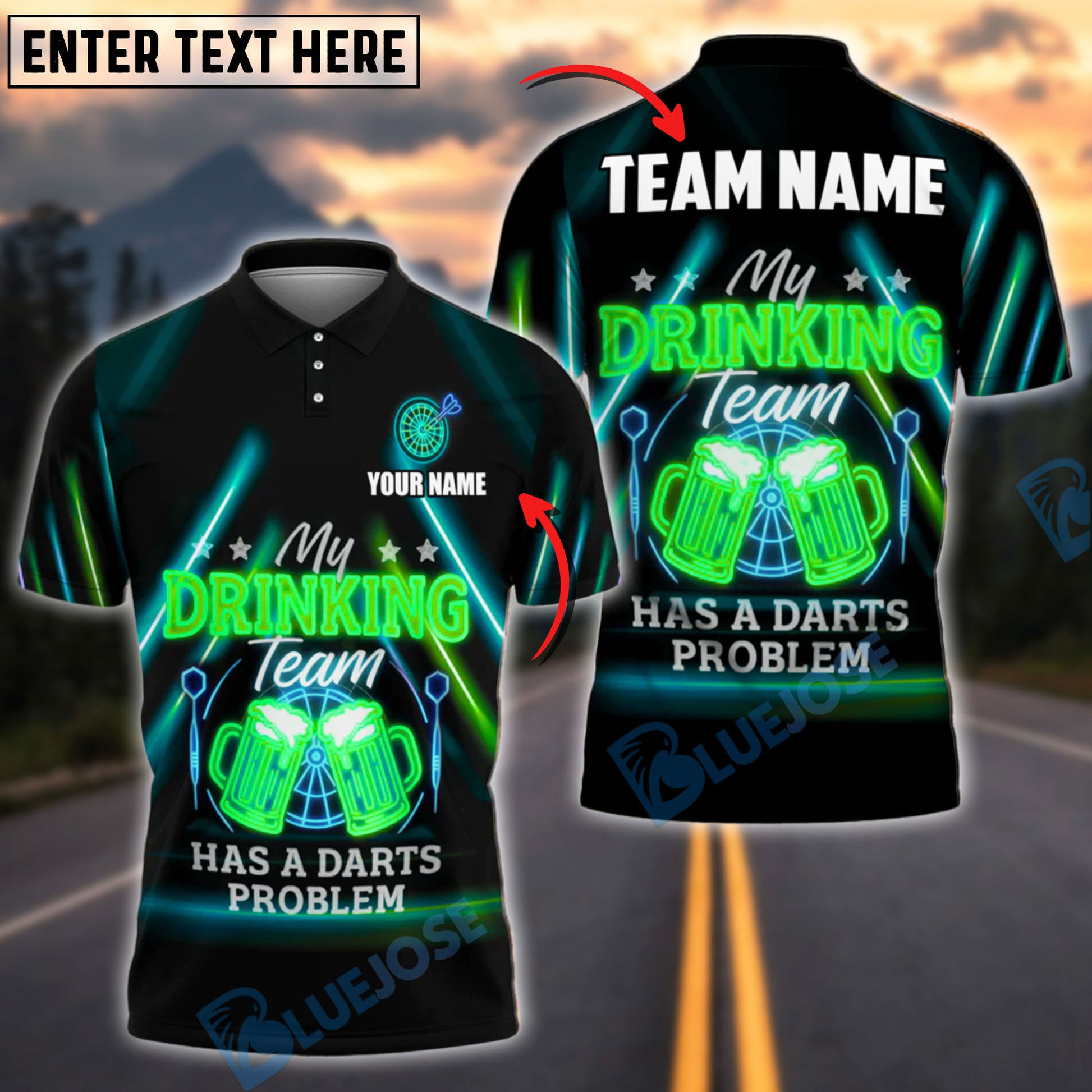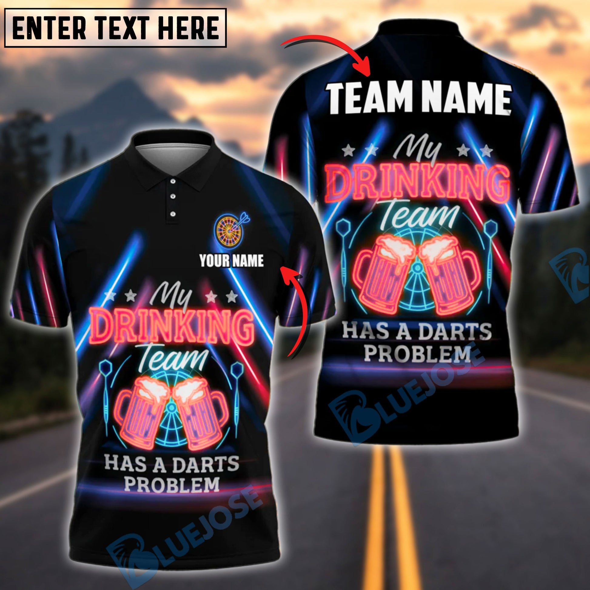BlueJose Darts Beer Quote Shirt Neon Glow Design Customized Name, Team Name 3D Shirt (4 Colors)