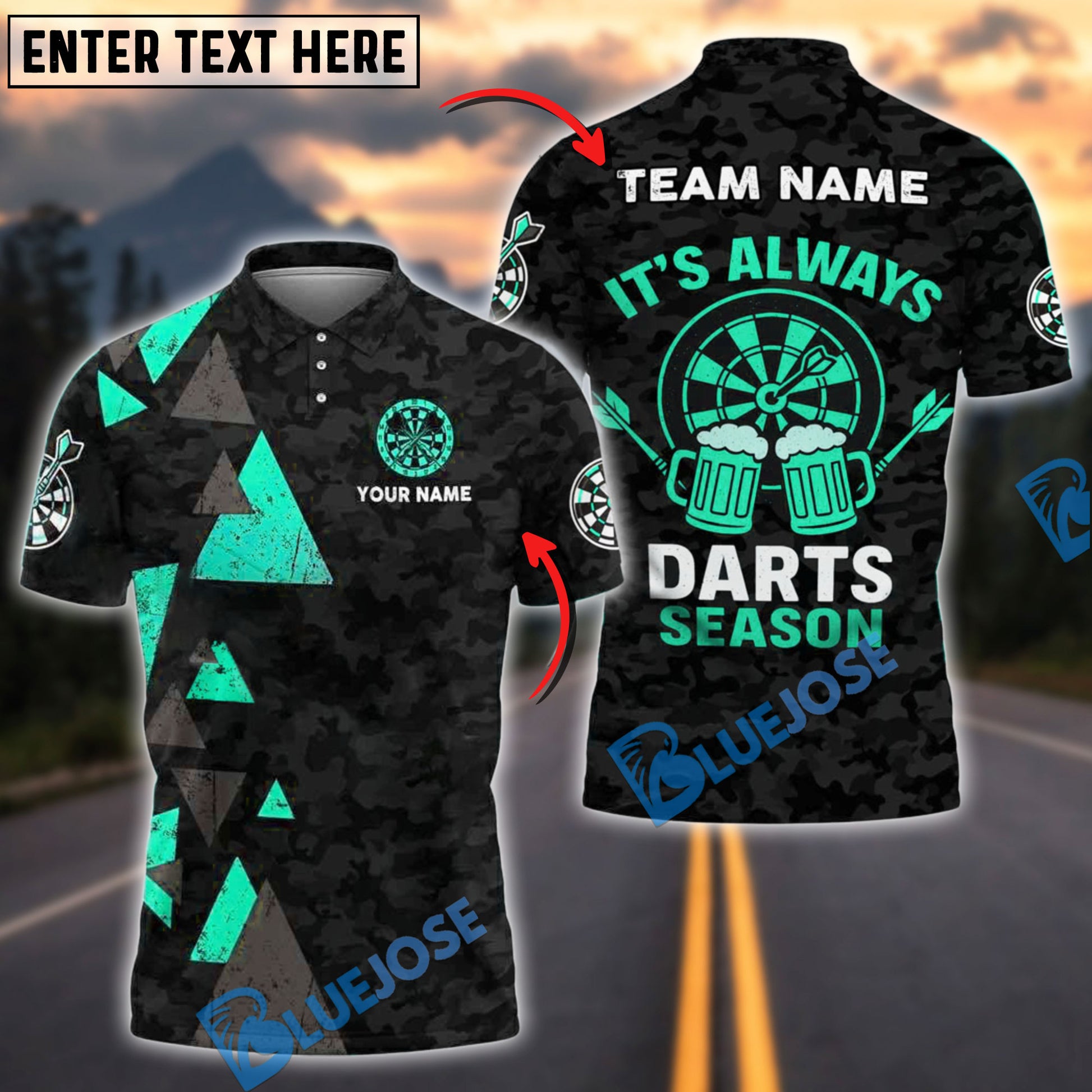 BlueJose Darts Beer Time Camo Style Personalized Name, Team Name Shirt (4 Colors)