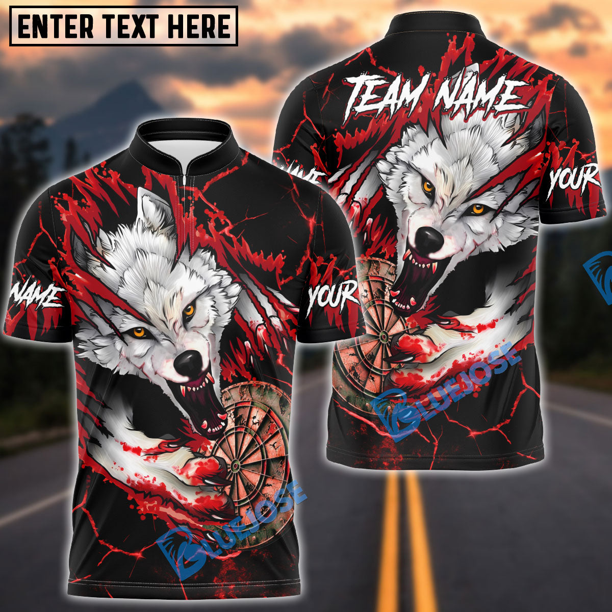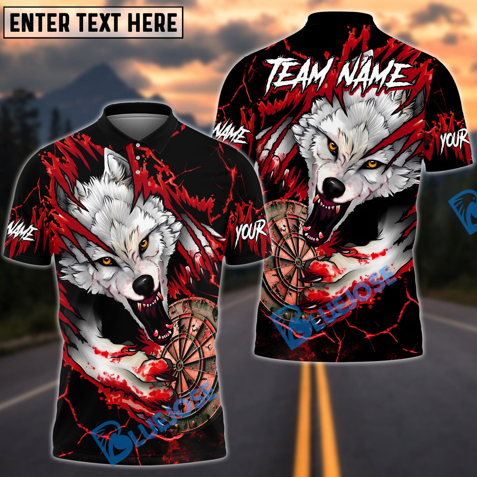 BlueJose Darts Bloody Wolf Old Dartboard Multicolor Options Personalized Name Shirt (4 Colors)