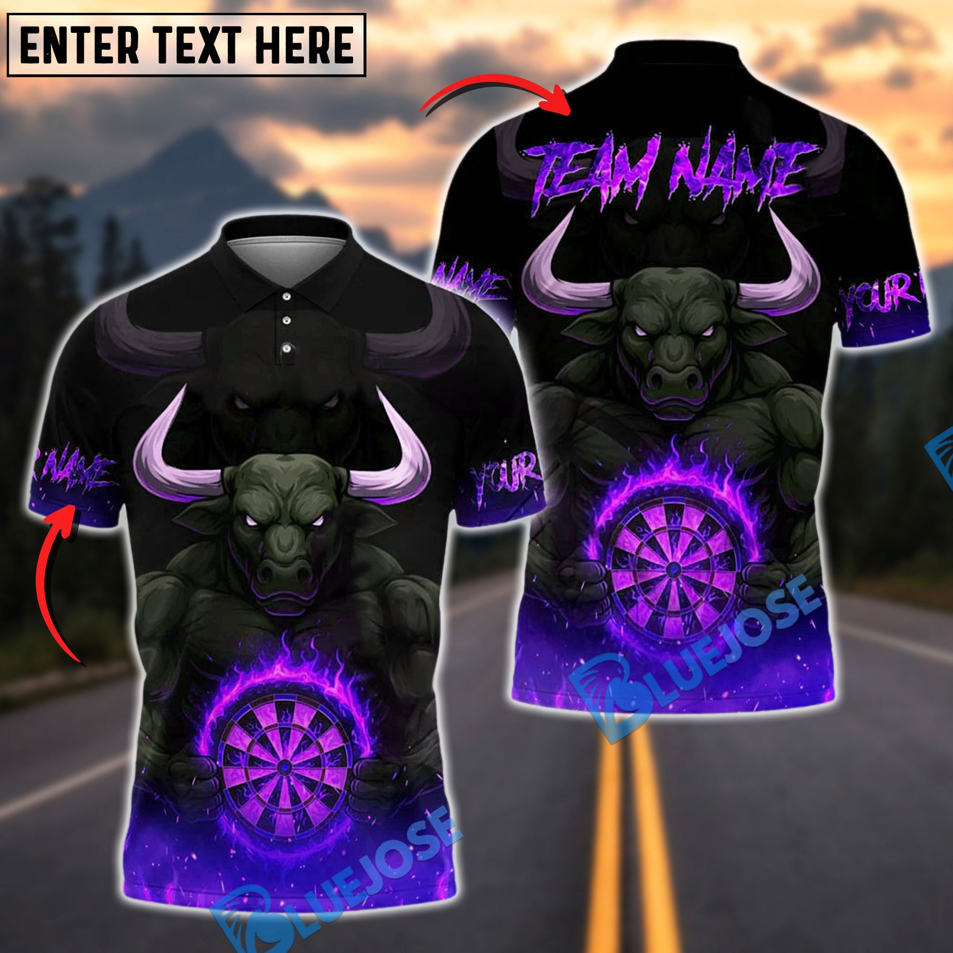 BlueJose Darts Bull Angry Flame Bullseye Customized Name, Team Name 3D Shirt (4 Colors)