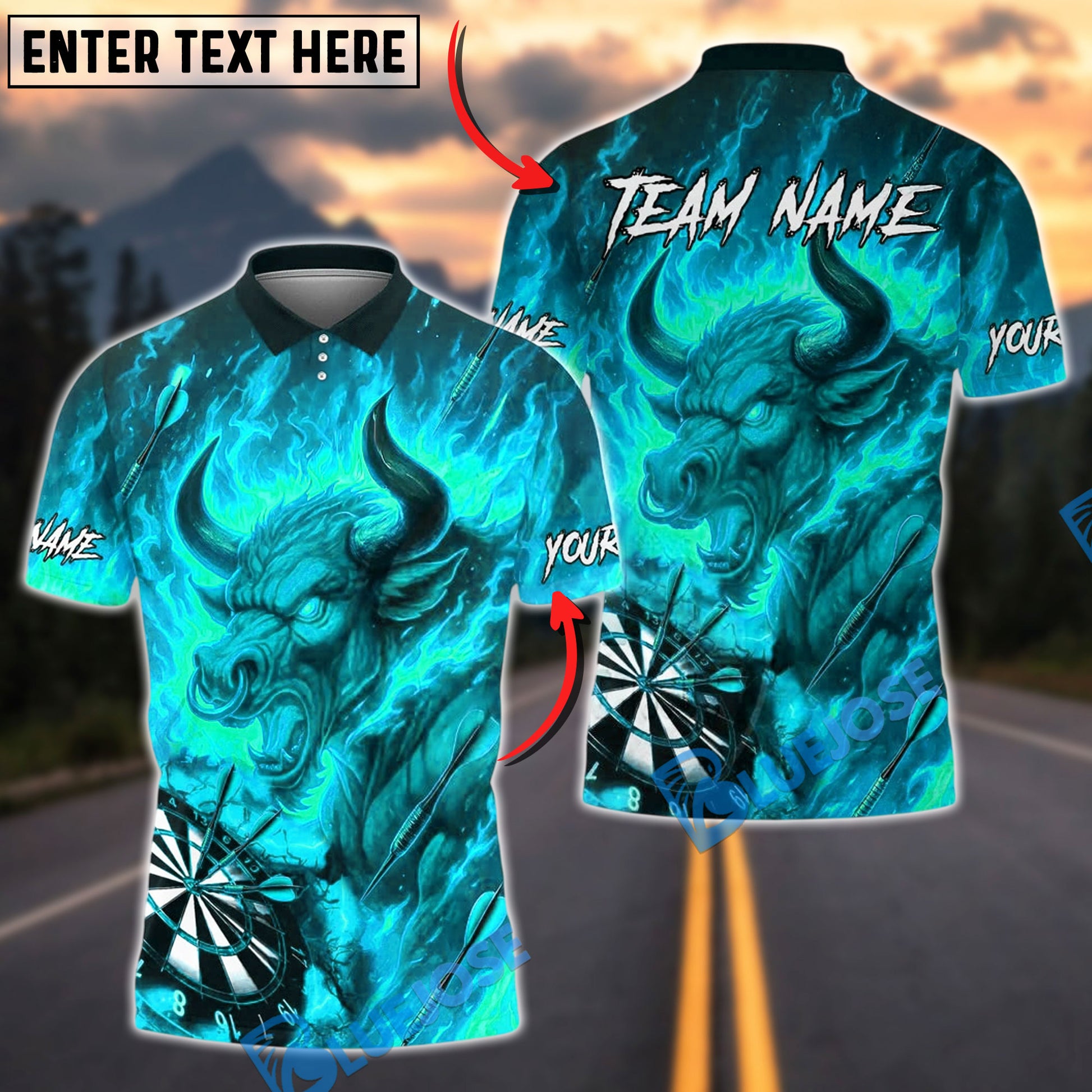 BlueJose Darts Bull Fire Flames Personalized Name, Team Name Unisex Shirt (4 Colors)