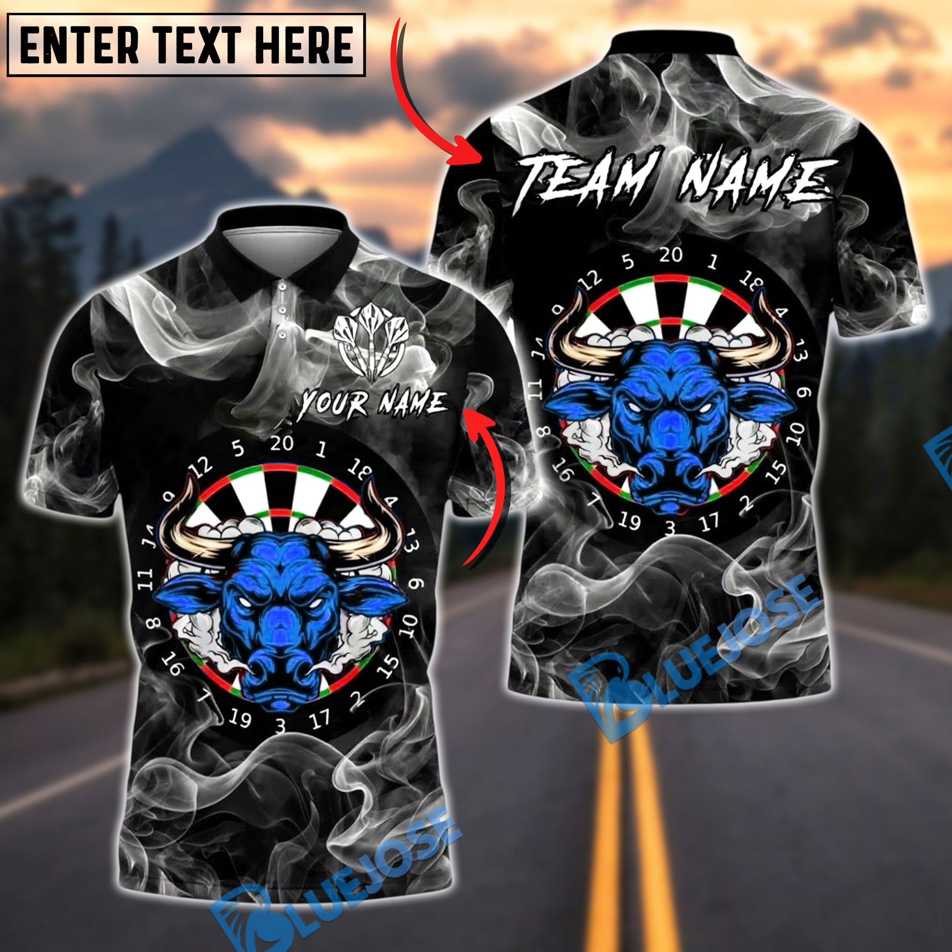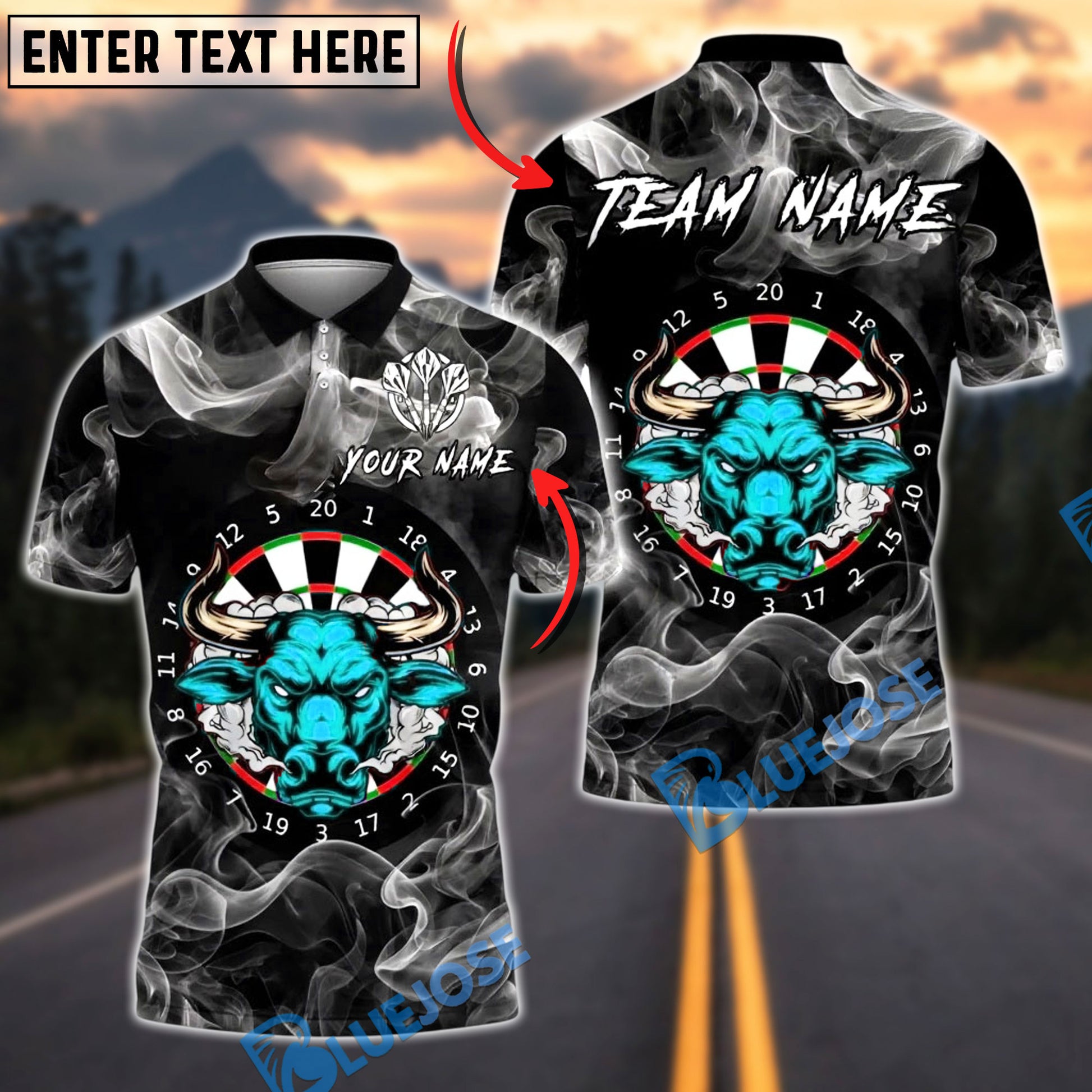 BlueJose Darts Bull Smoke Dartboard Personalized Name, Team Name Unisex Shirt (4 Colors)