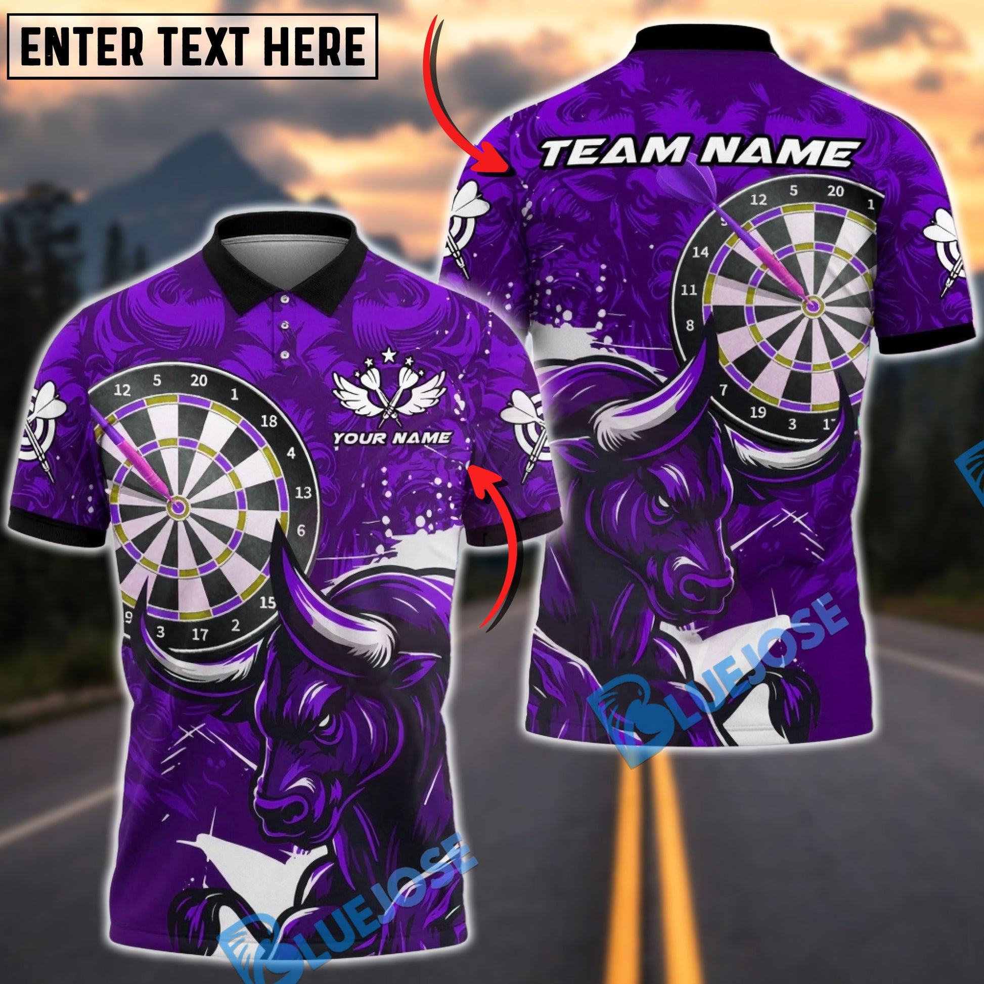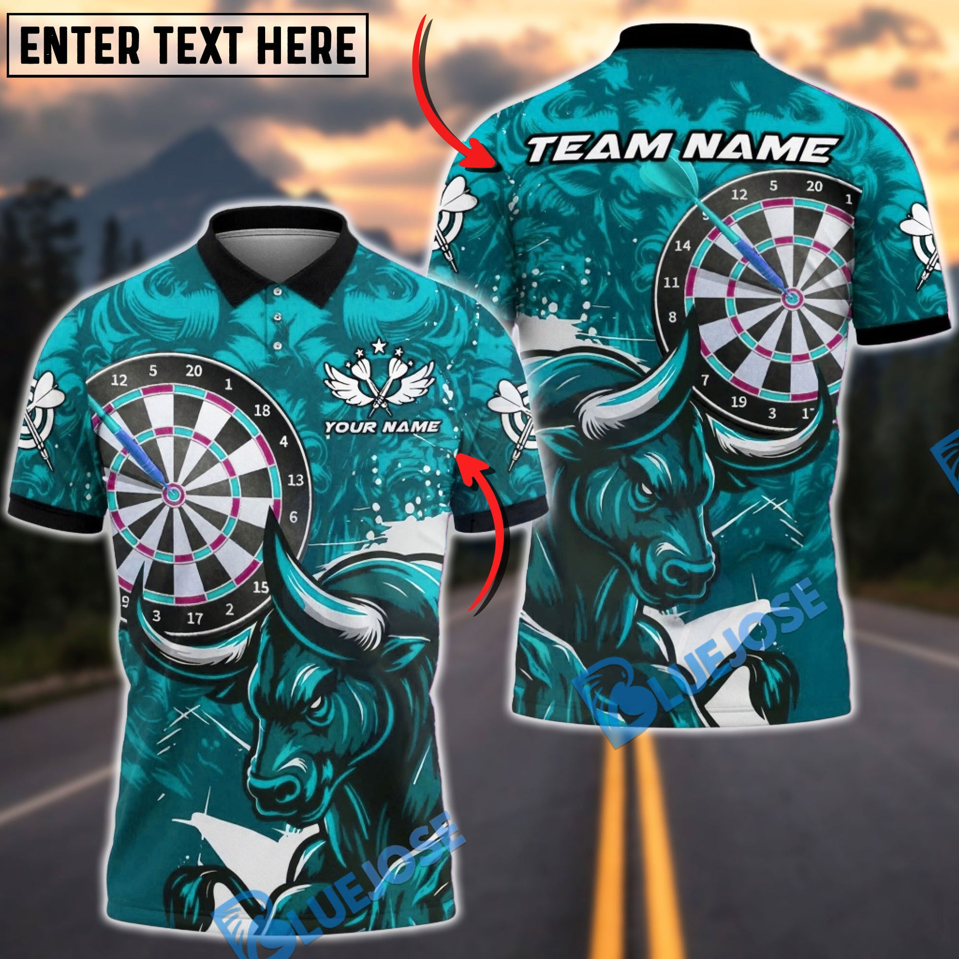 BlueJose Darts Bull Wing Emblem Style Multicolor Options Personalized Name Shirt (4 Colors)