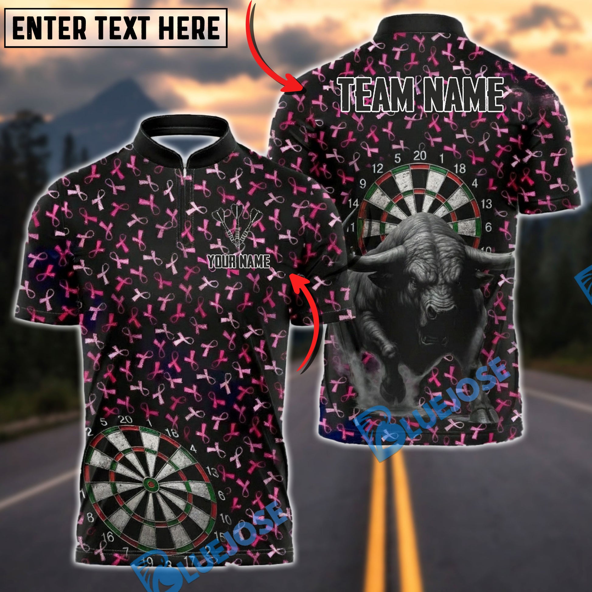 BlueJose Darts Bullseye Fury Breast Cancer Awareness Ribbon Personalized Name Shirt
