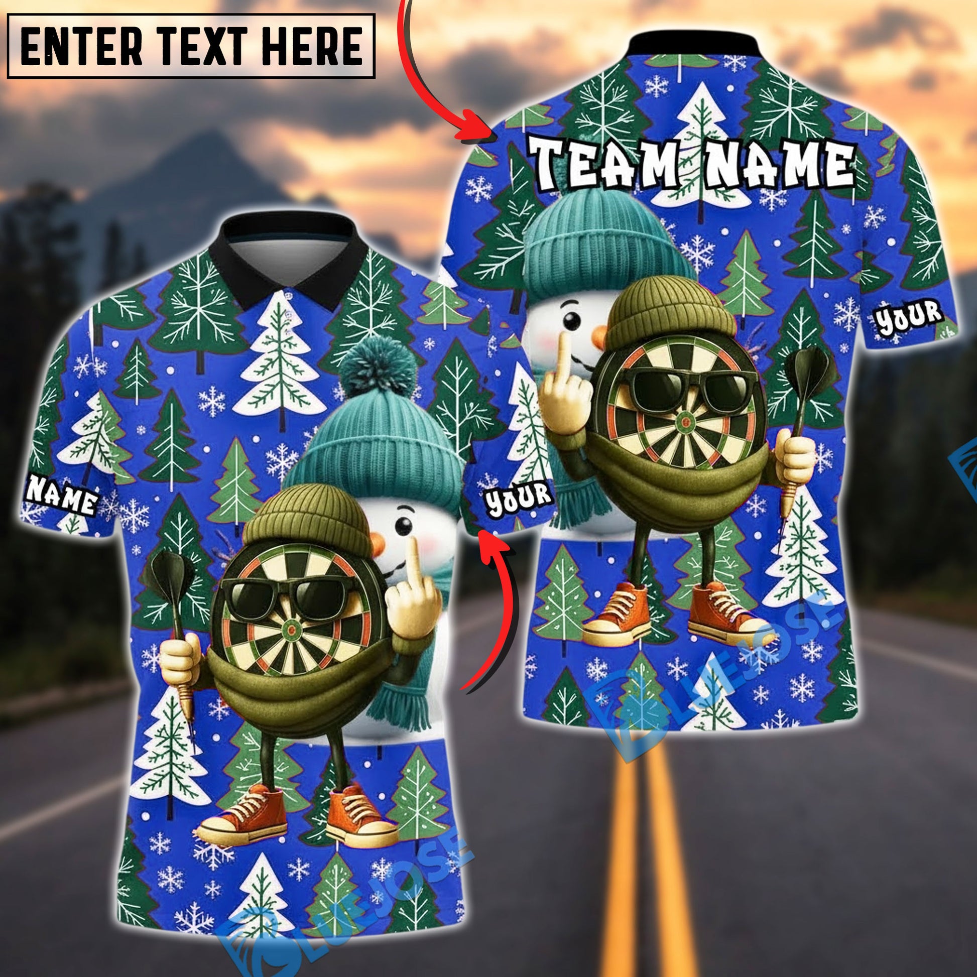 BlueJose Darts Christmas Tree Snowman Dartboard Festive Personalized Name, Team Name Unisex Shirt (4 Colors)