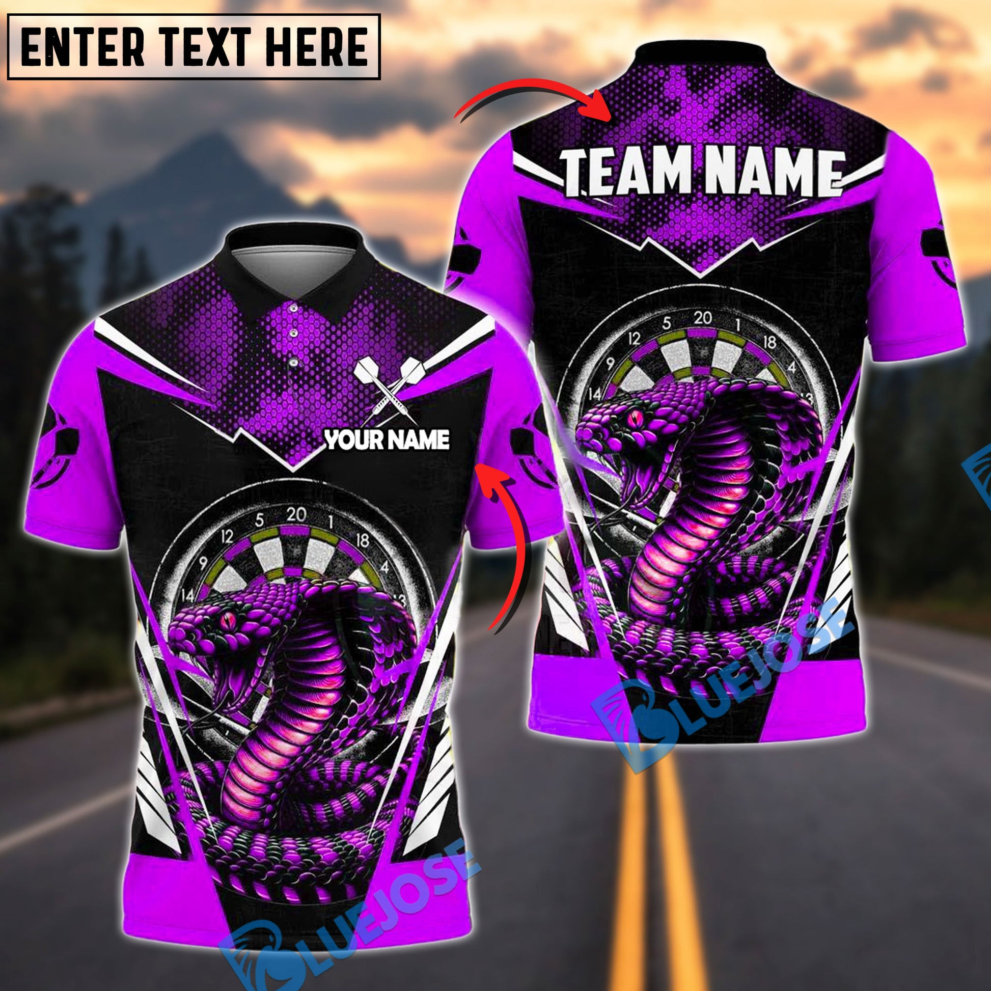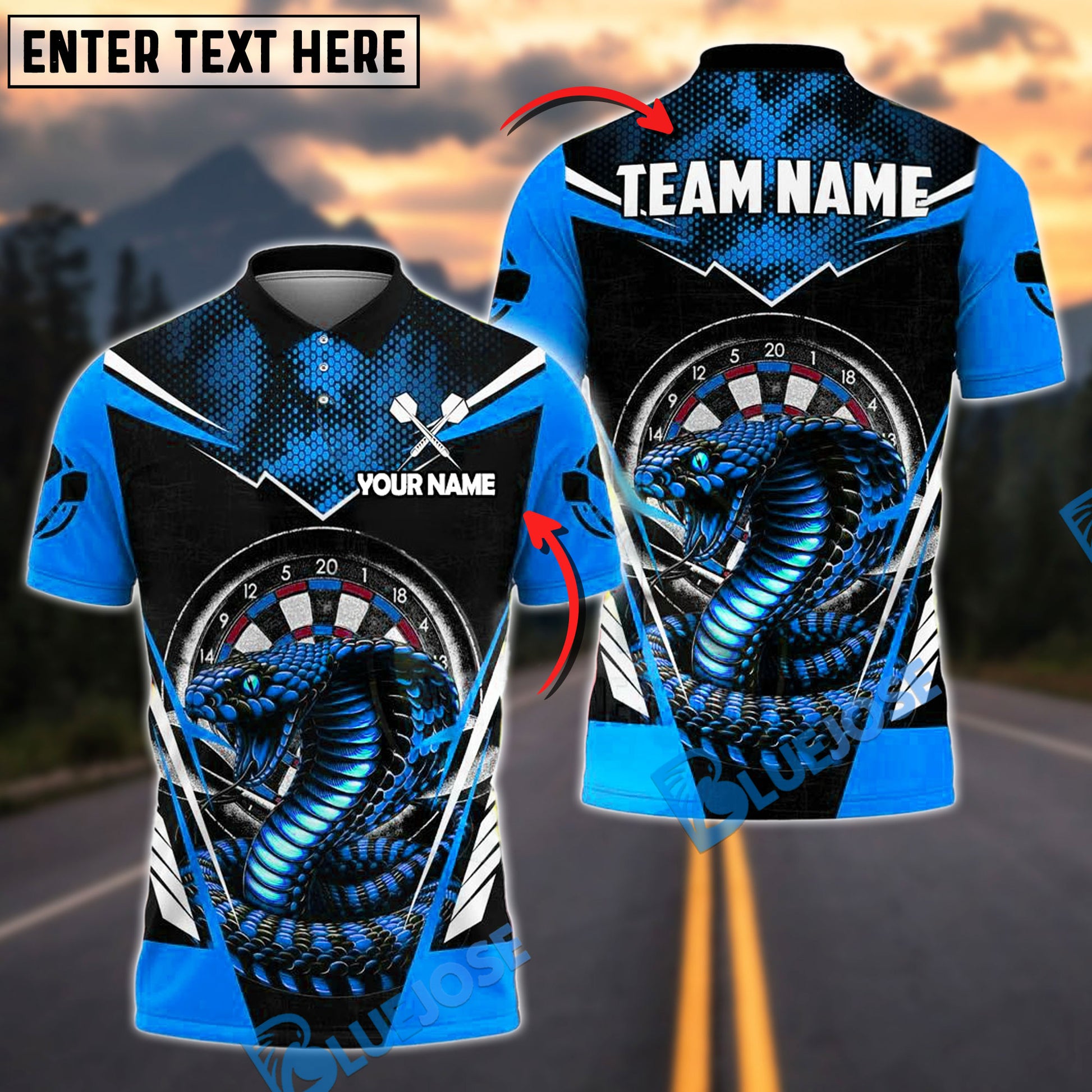 BlueJose Darts Cobra Aggressive Snake Theme Personalized Name, Team Name Shirt (4 Colors)