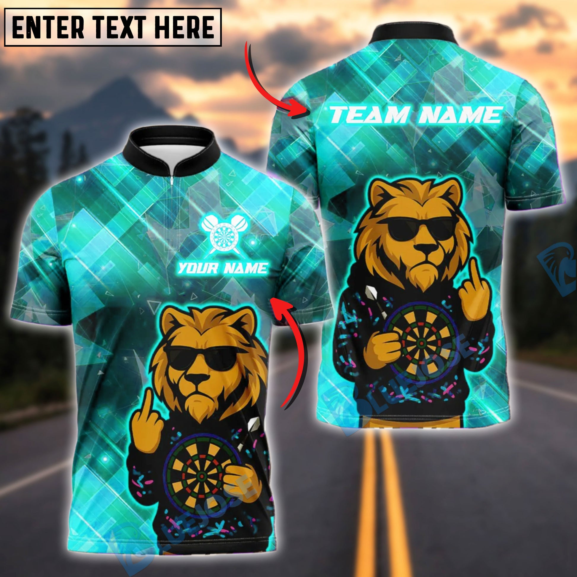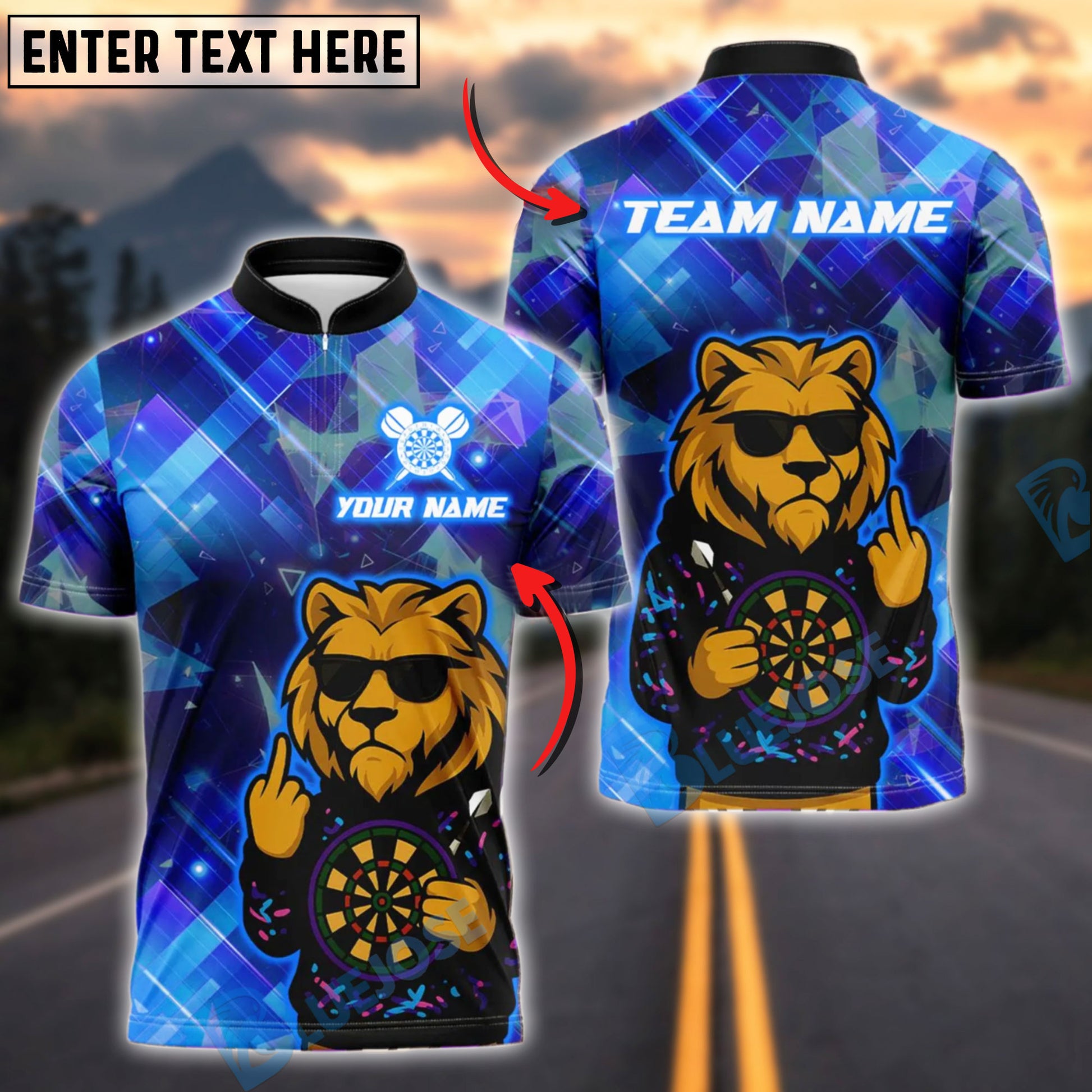 BlueJose Darts Cool Lion Sunglasses Neon Customized Name, Team Name 3D Shirt (4 Colors)