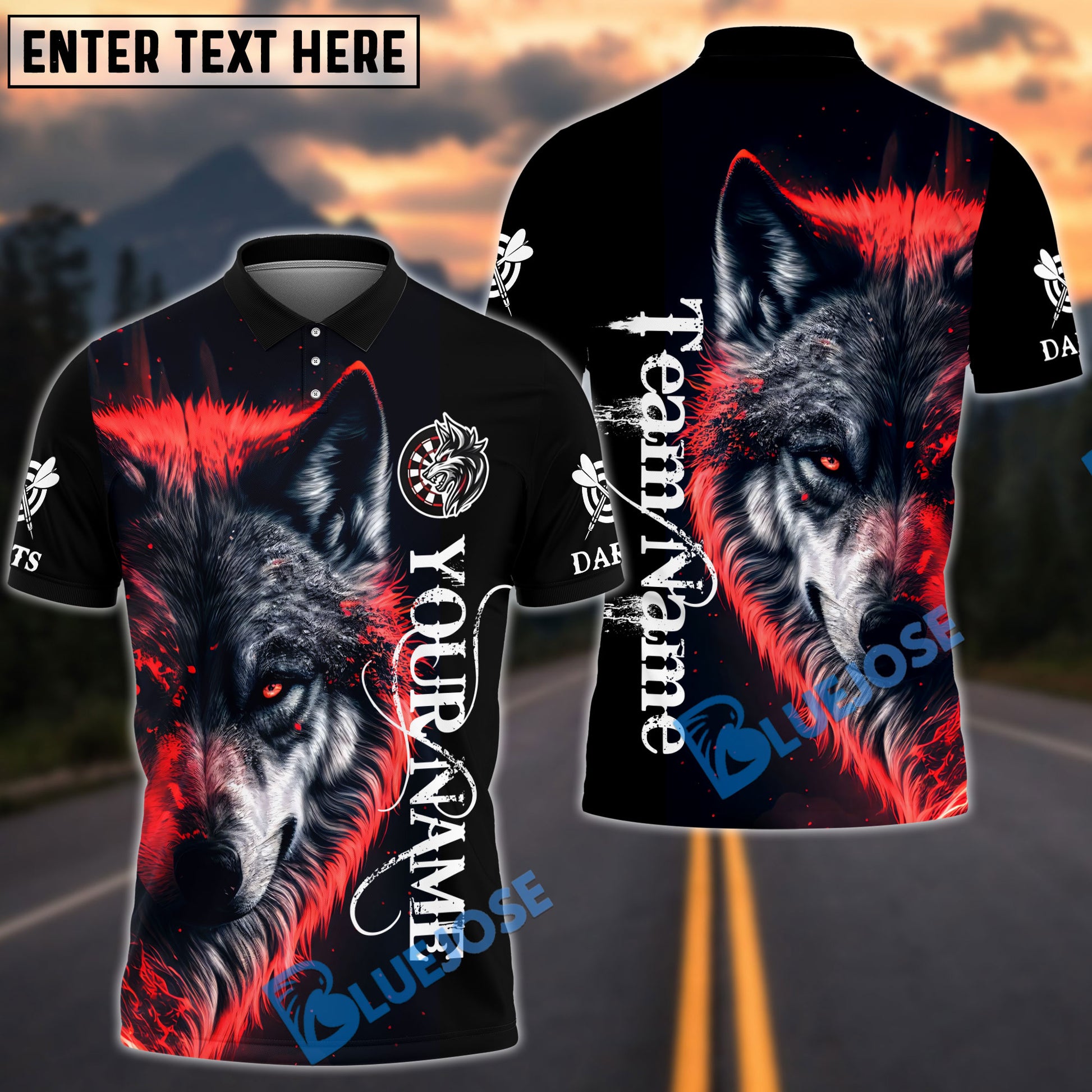 BlueJose Darts Cool Wolf Multicolor Options Personalized Name Shirt (4 Colors)