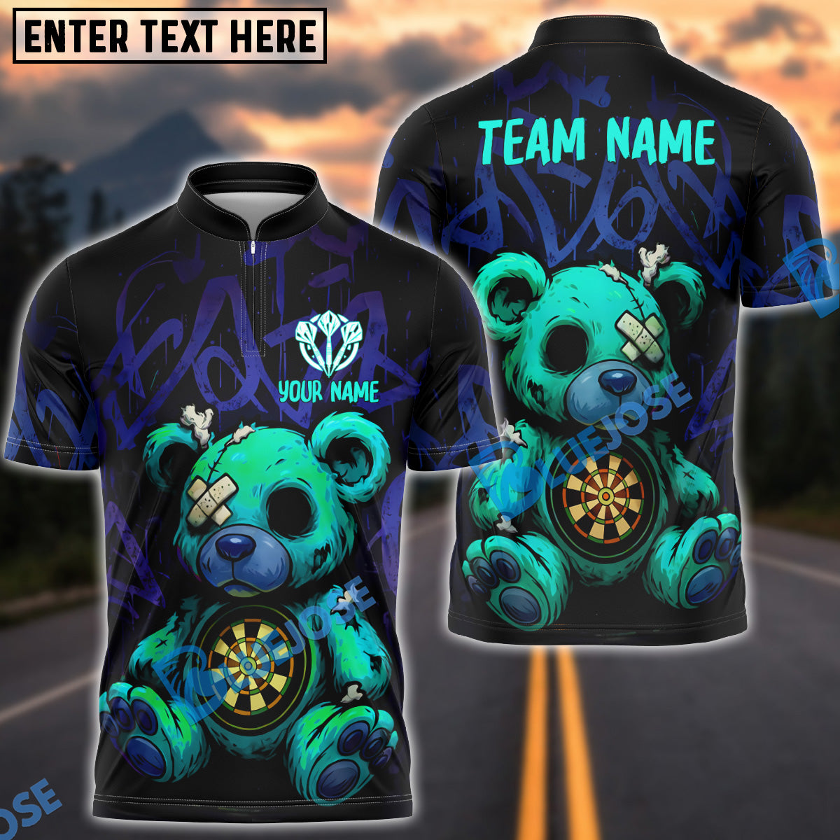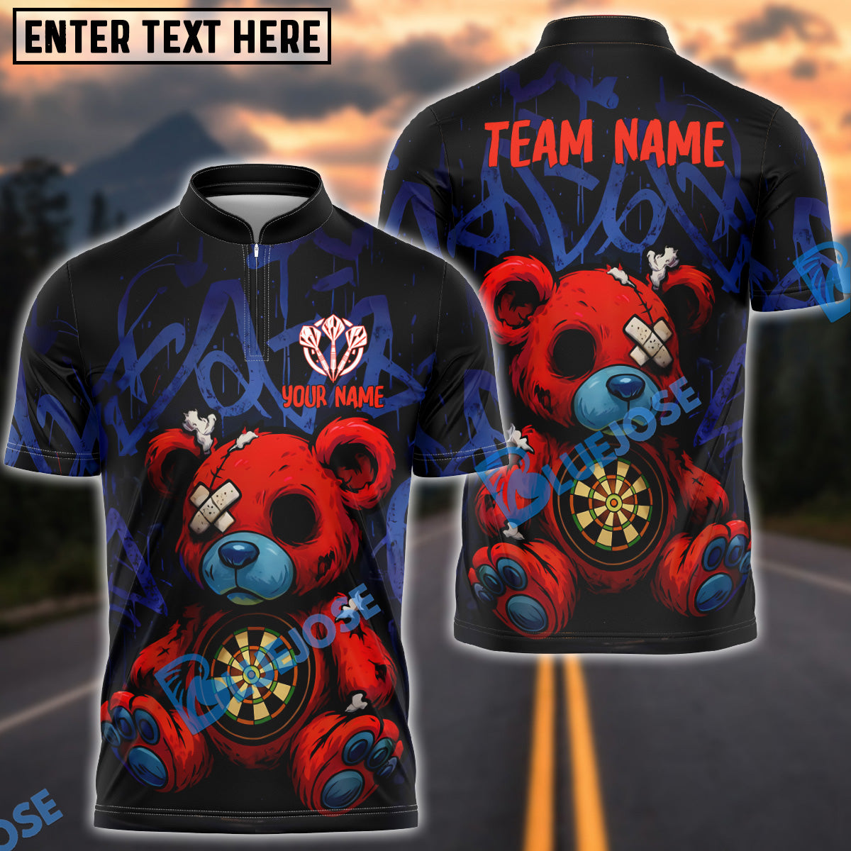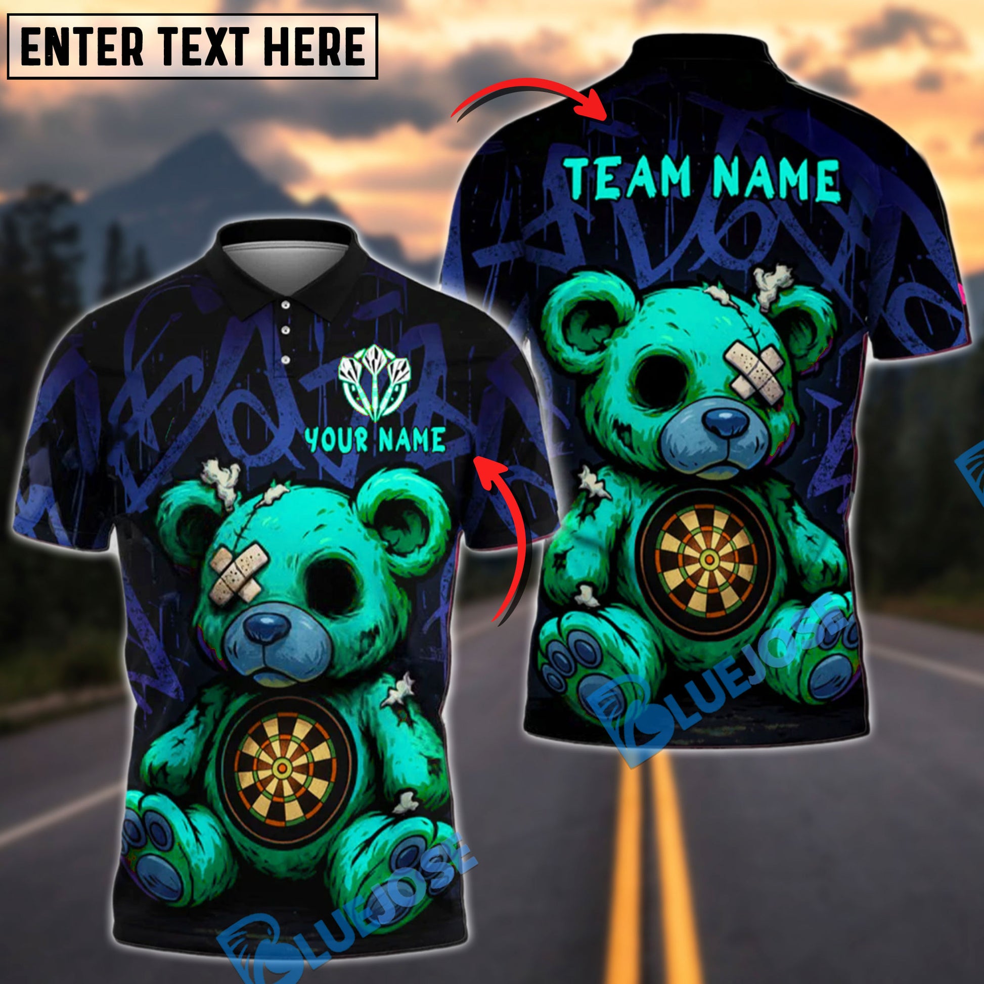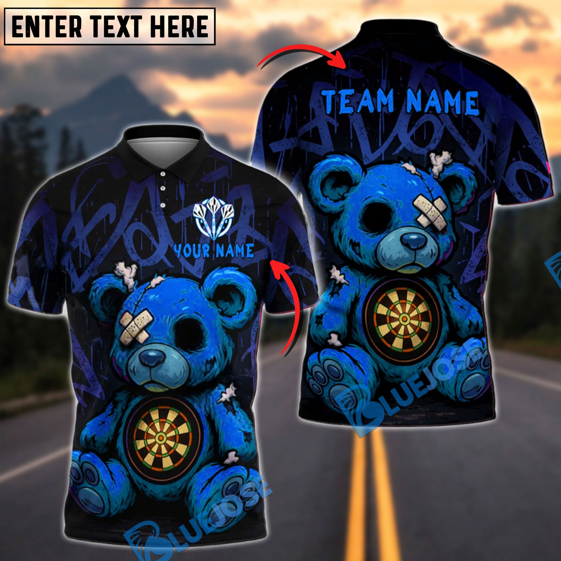 BlueJose Darts Creepy Teddy Graffiti Personalized Name, Team Name Shirt (4 Colors)