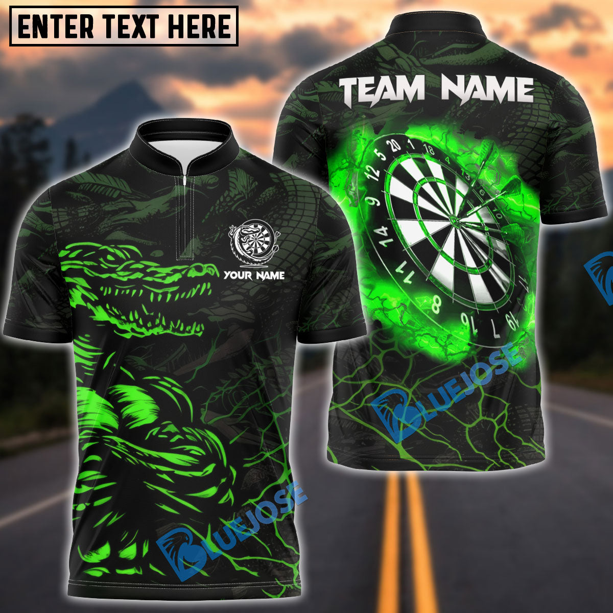 BlueJose Darts Crocodile Fire Pattern Personalized Name, Team Name Shirt (4 Colors)