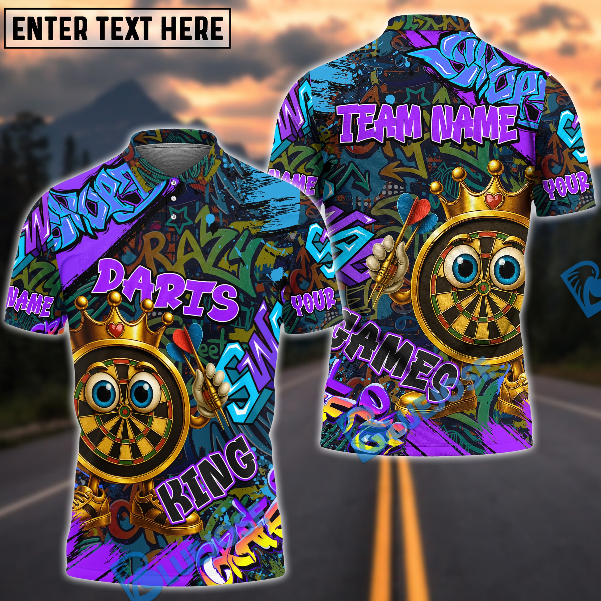 BlueJose Darts Crown Graffiti Champion Multicolor Options Personalized Name Shirt (4 Colors)