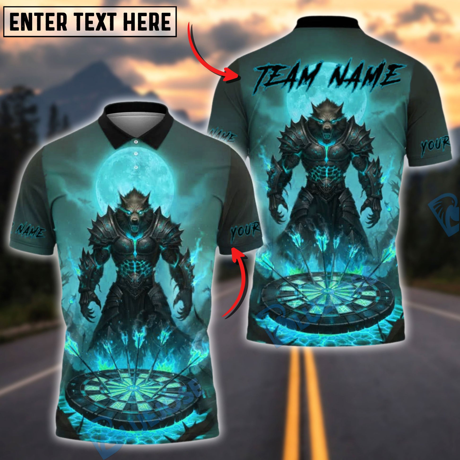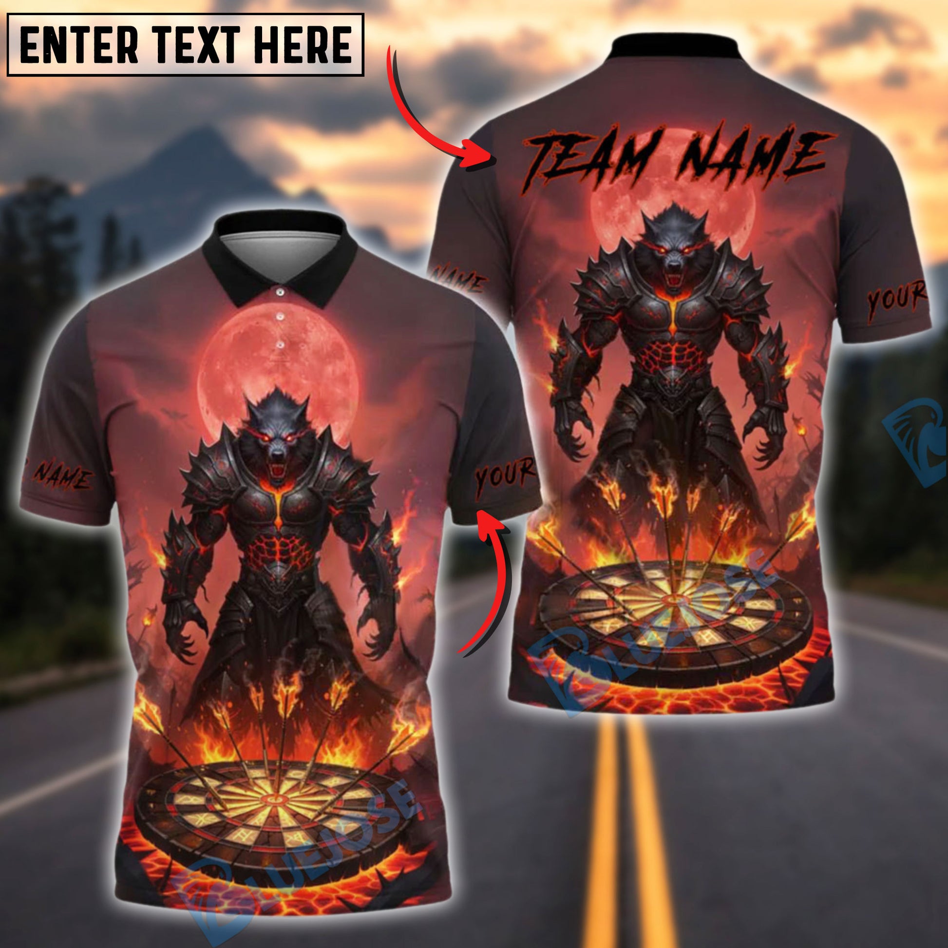 BlueJose Darts Dark Knight Wolf Red Moon Fiery Dartboard Customized Name, Team Name 3D Shirt (4 Colors)