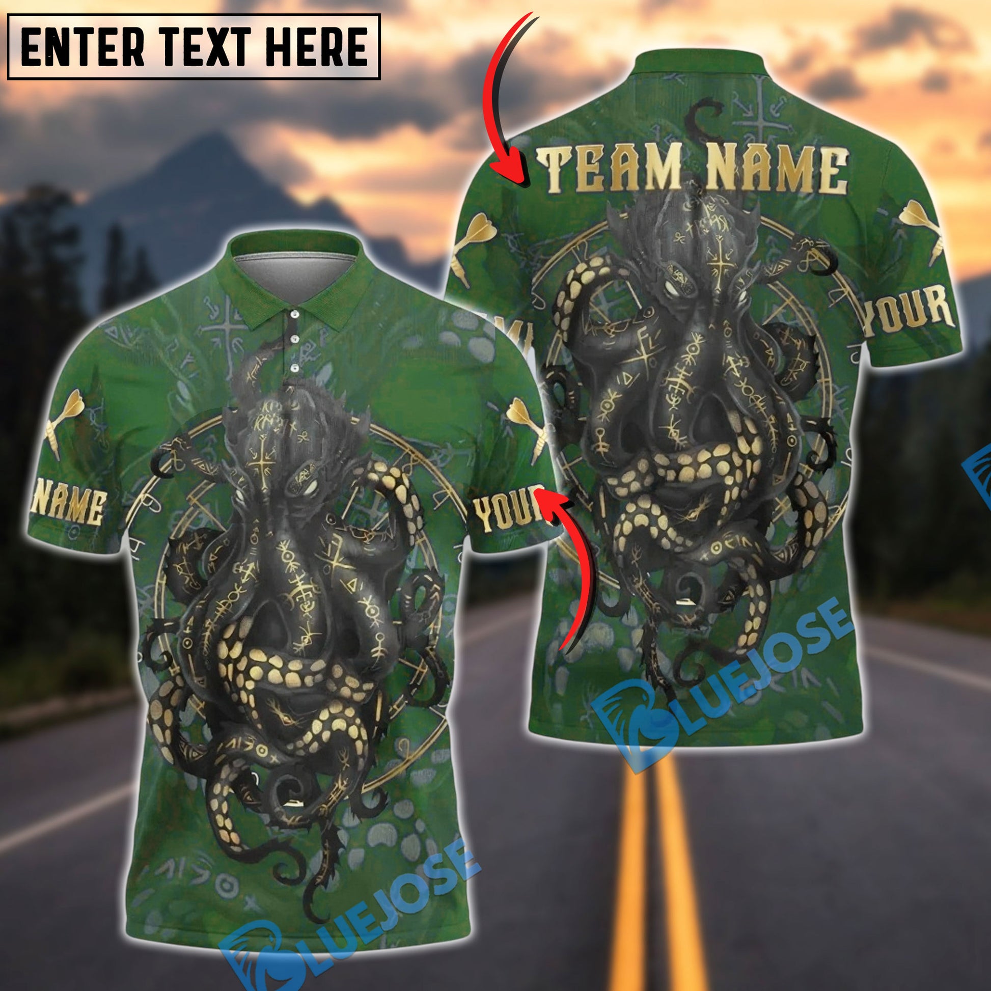 BlueJose Darts Dark Octopus Gold Rune Customized Name, Team Name 3D Shirt (4 Colors)
