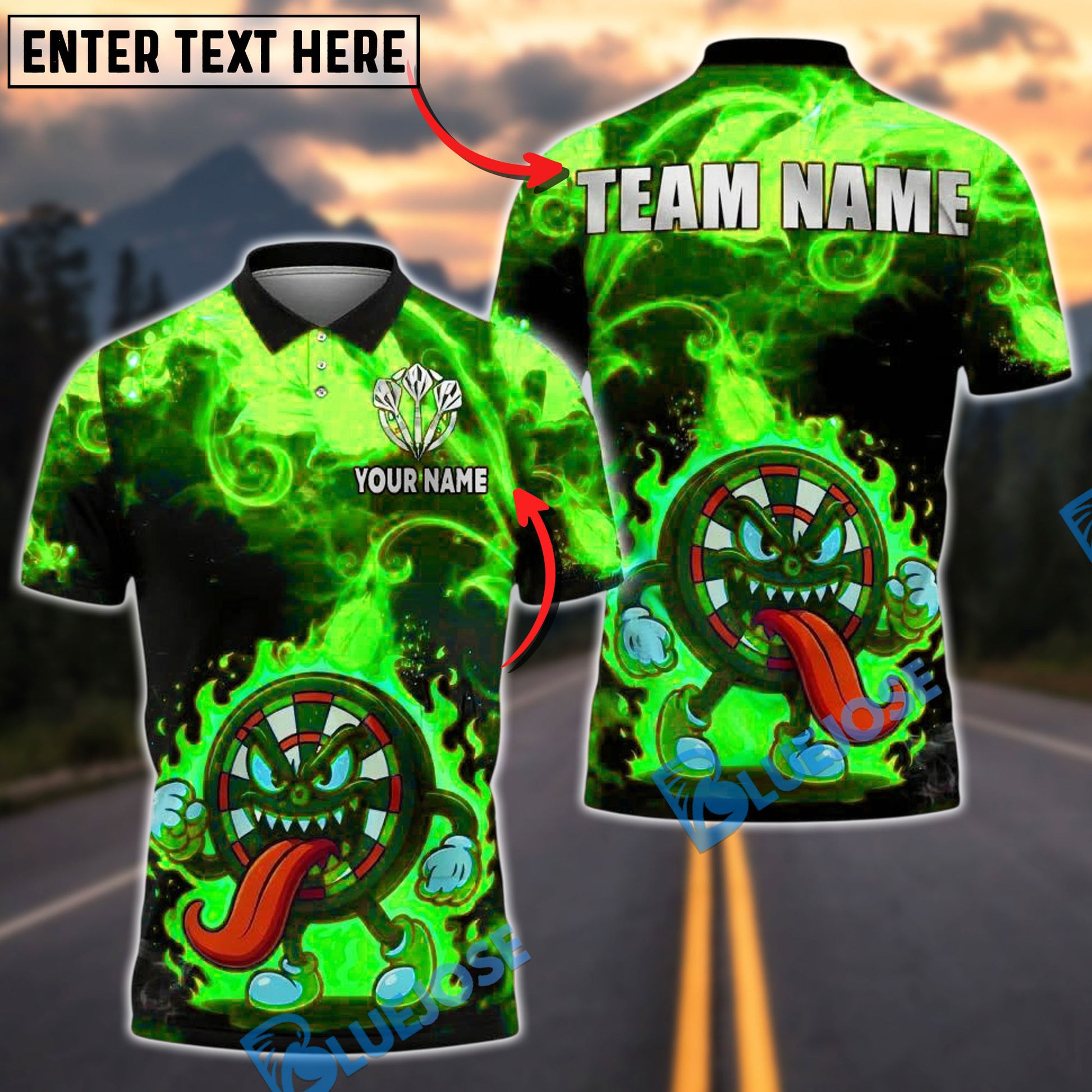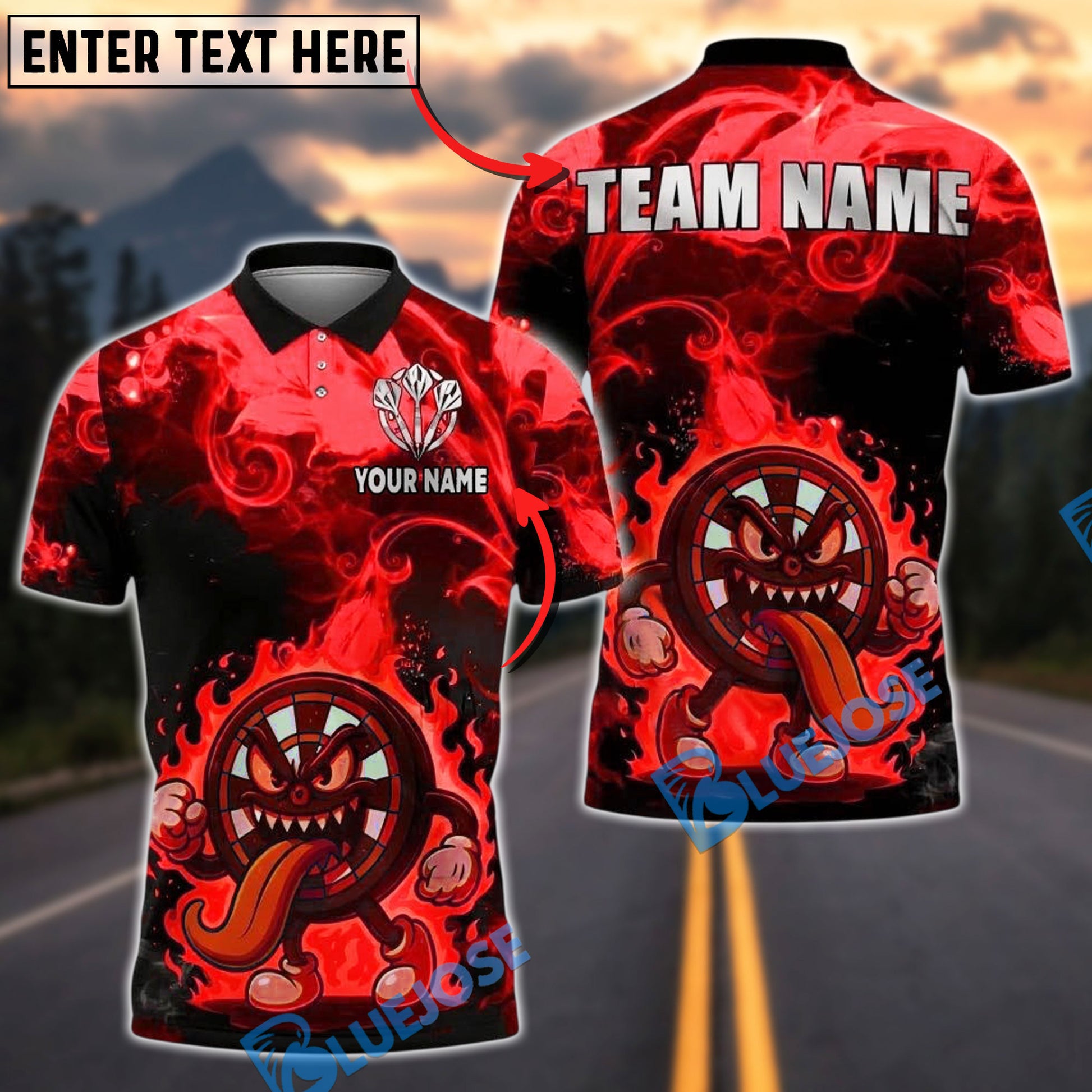 BlueJose Darts Dartboard Cartoon Crazy Flame Personalized Name, Team Name Unisex Shirt (4 Colors)