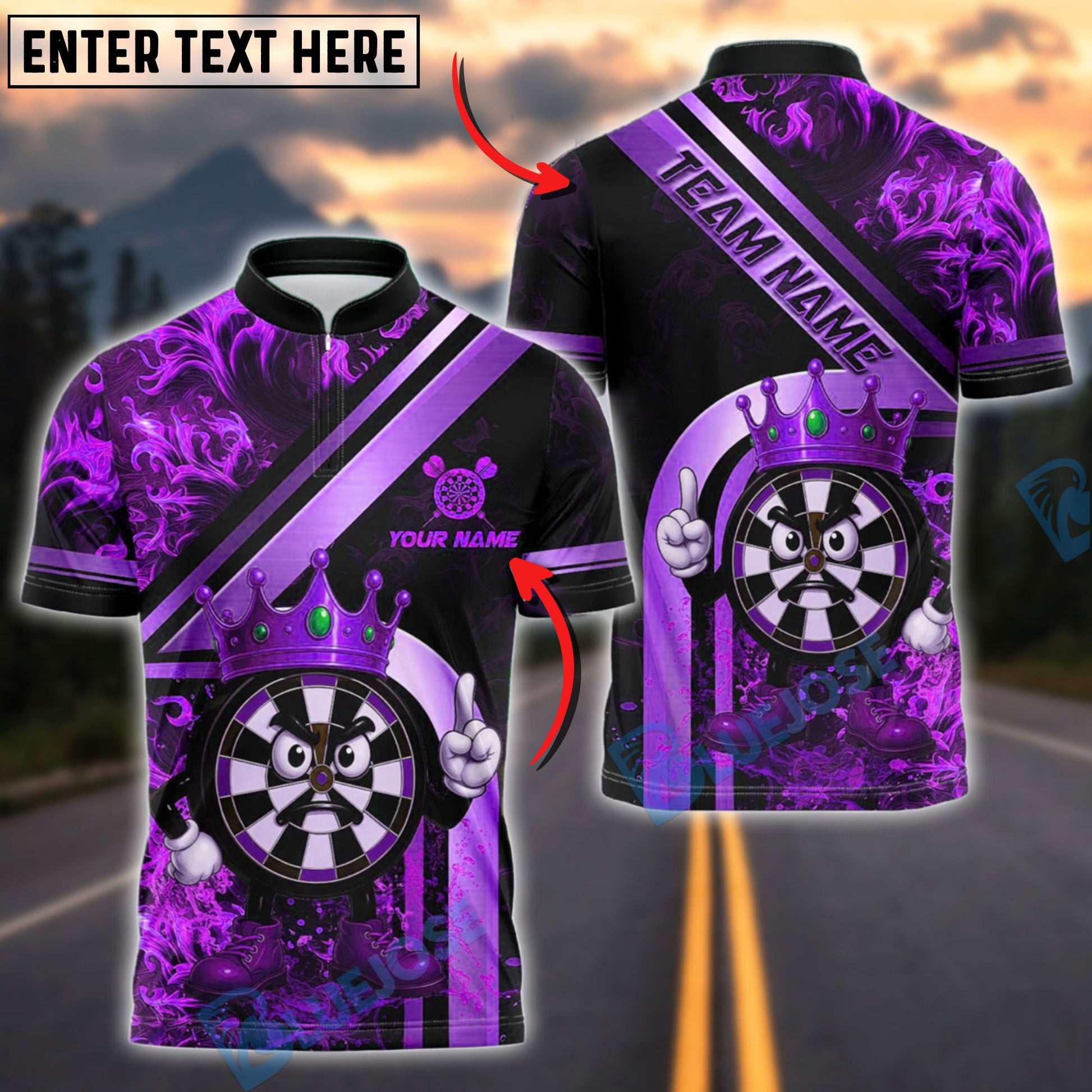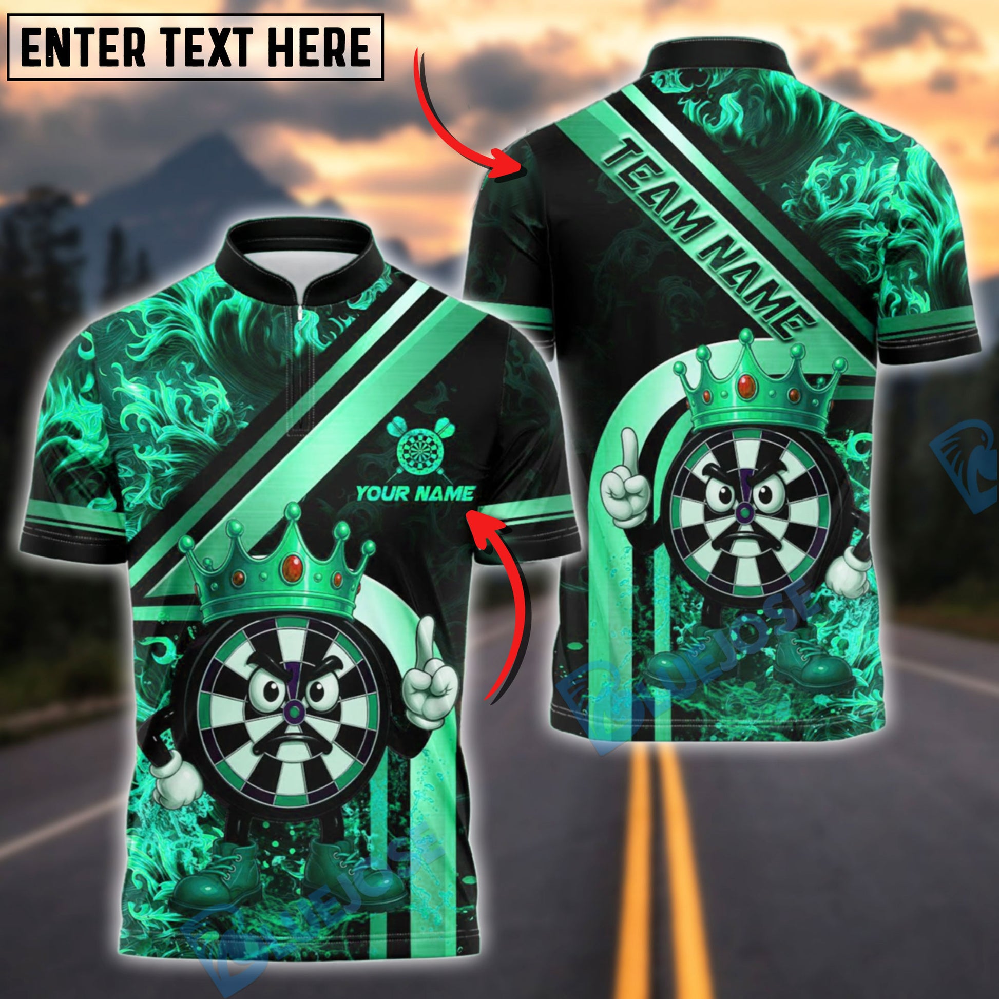 BlueJose Darts Dartboard King Cartoon Flame Customized Name, Team Name 3D Shirt (4 Colors)