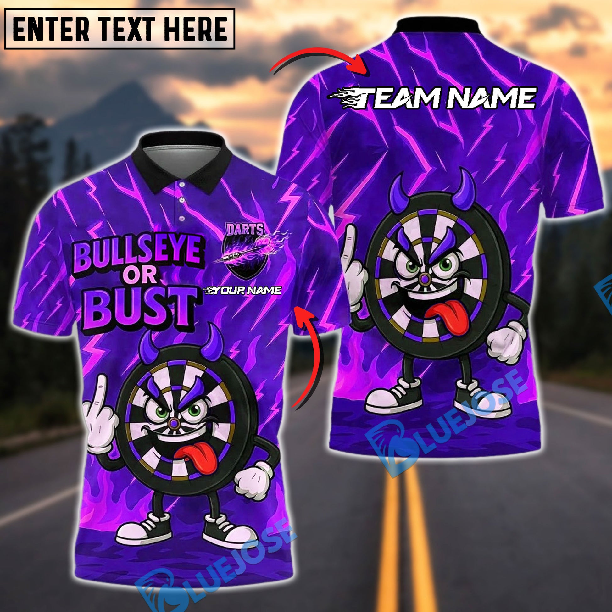 BlueJose Darts Devil Cartoon Dartboard Bullseye Customized Name, Team Name 3D Shirt (4 Colors)