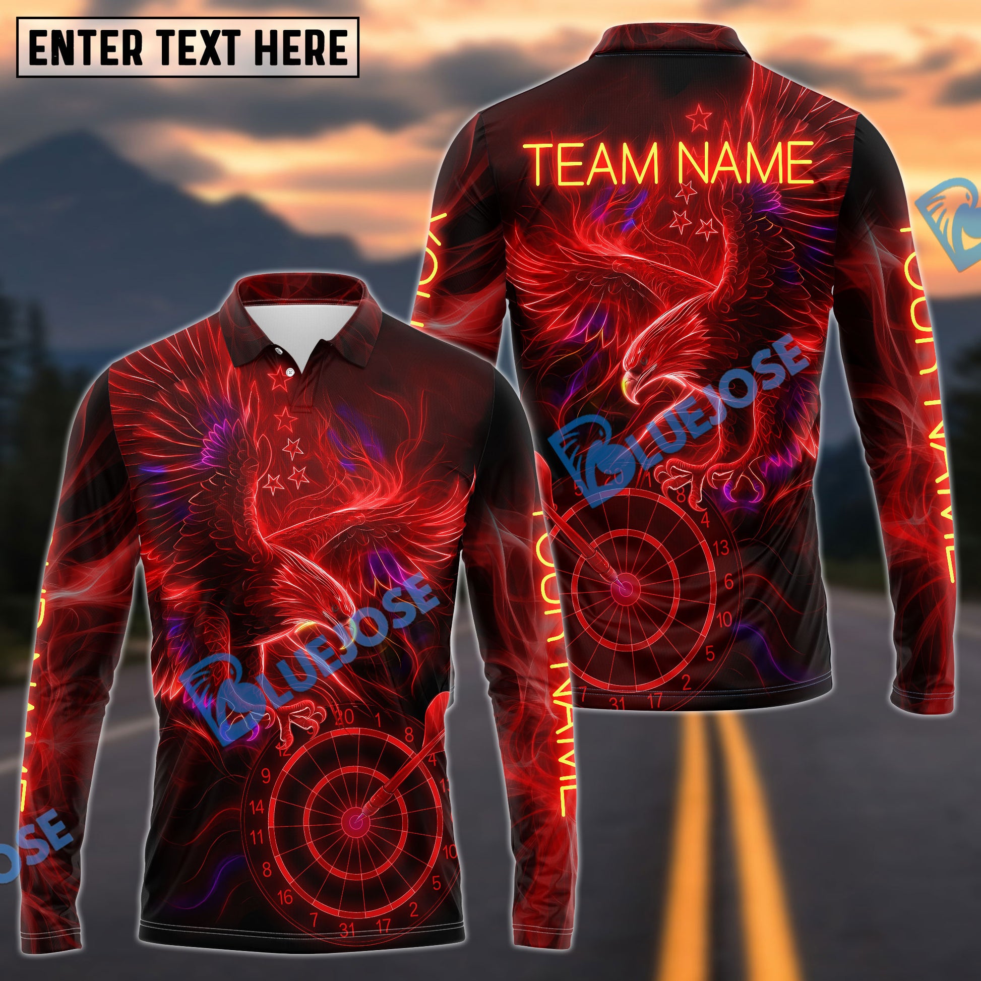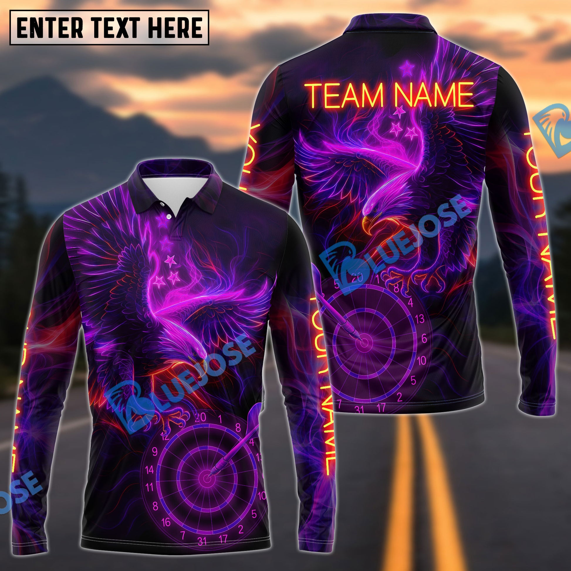 BlueJose Darts Eagle Neon Glow Personalized Name Long Sleeve Polo Shirt (4 Colors)