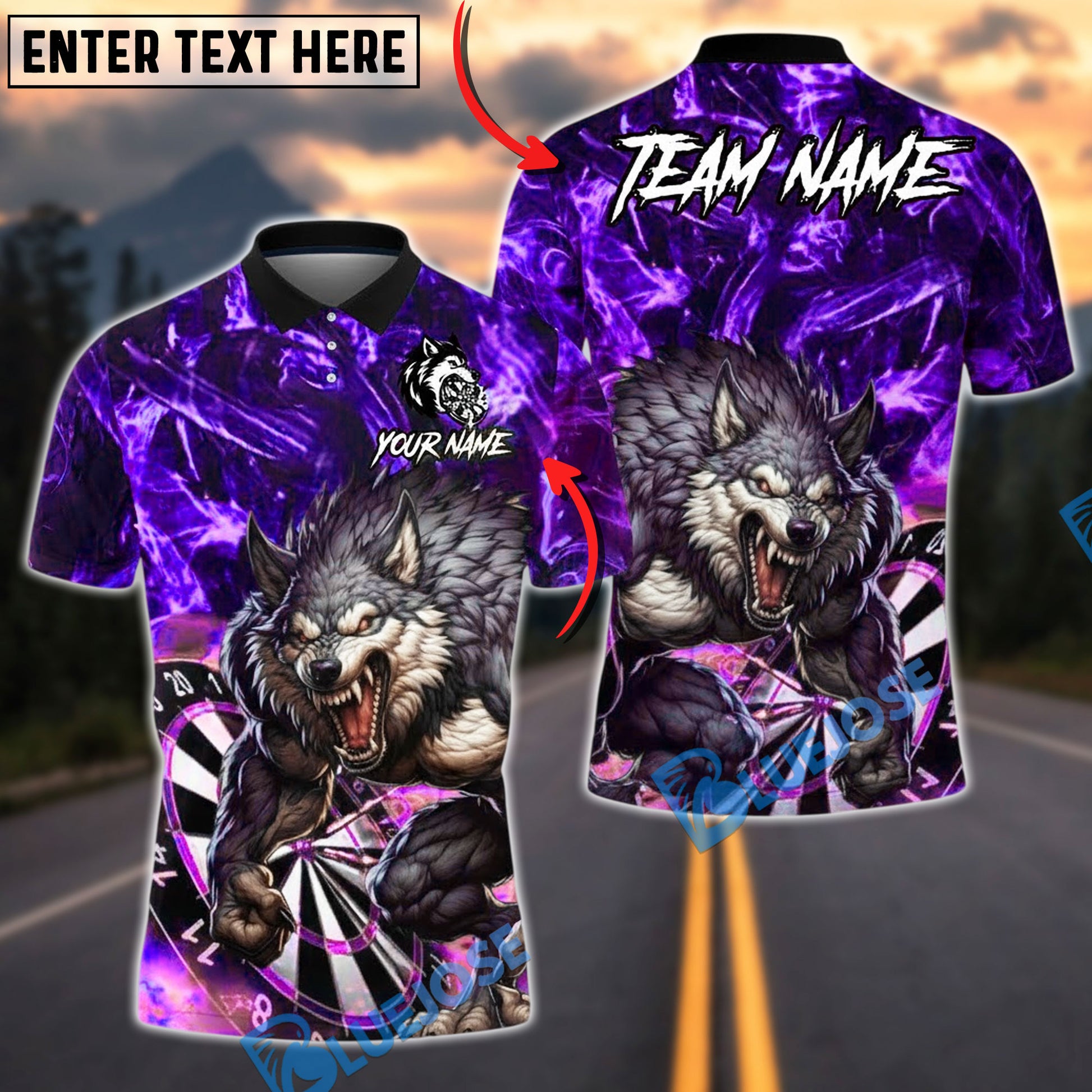 BlueJose Darts Fierce Howling Wolf with Lightning Personalized Name, Team Name Unisex Shirt (4 Colors)