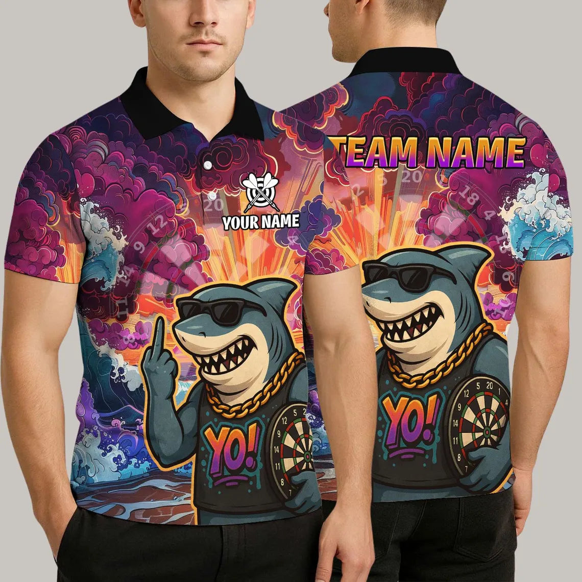BlueJose Darts Fierce Shark Dartboard Design Personalized Name Shirt