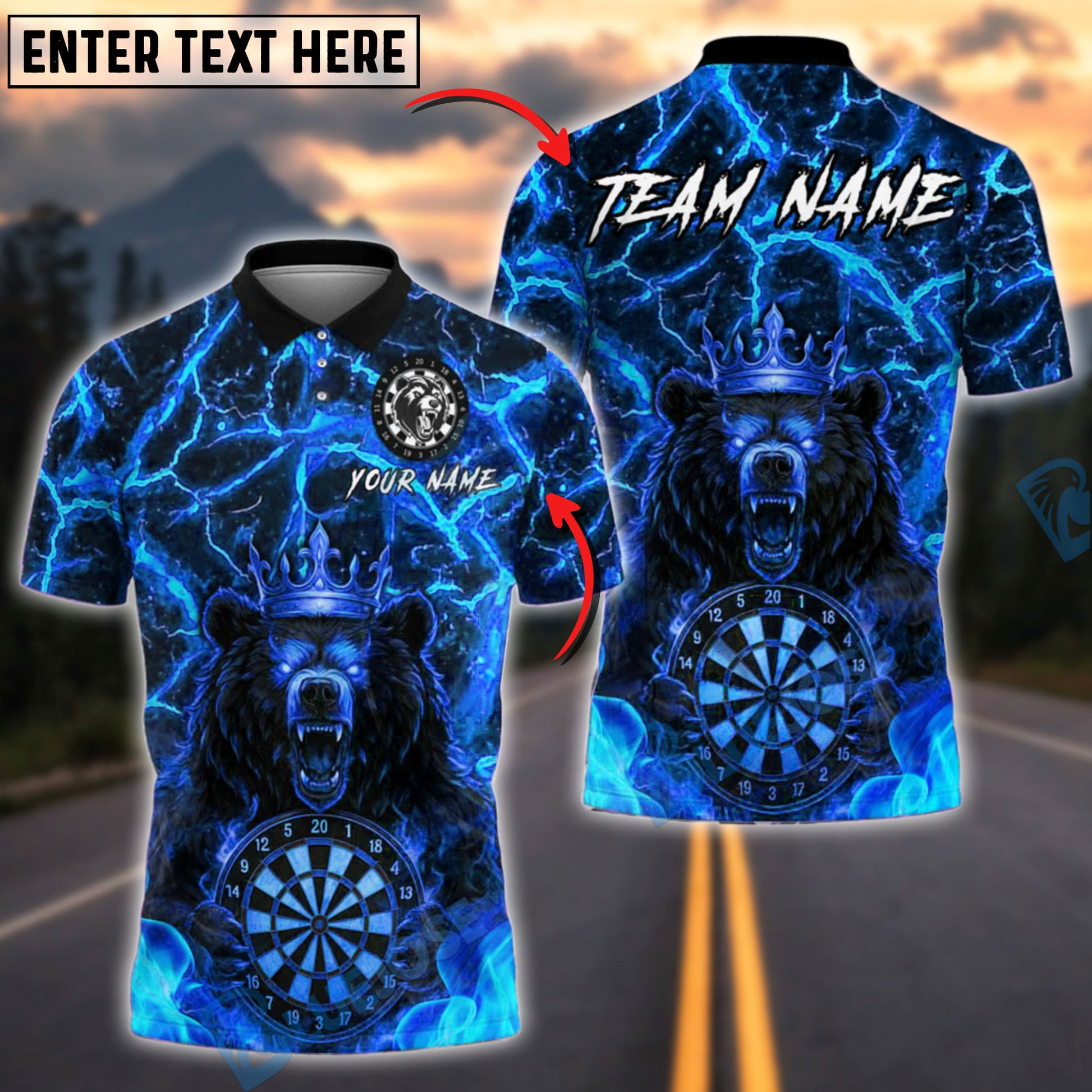 BlueJose Darts Fiery Bear King Customized Name, Team Name 3D Shirt (4 Colors)