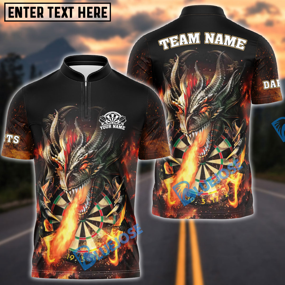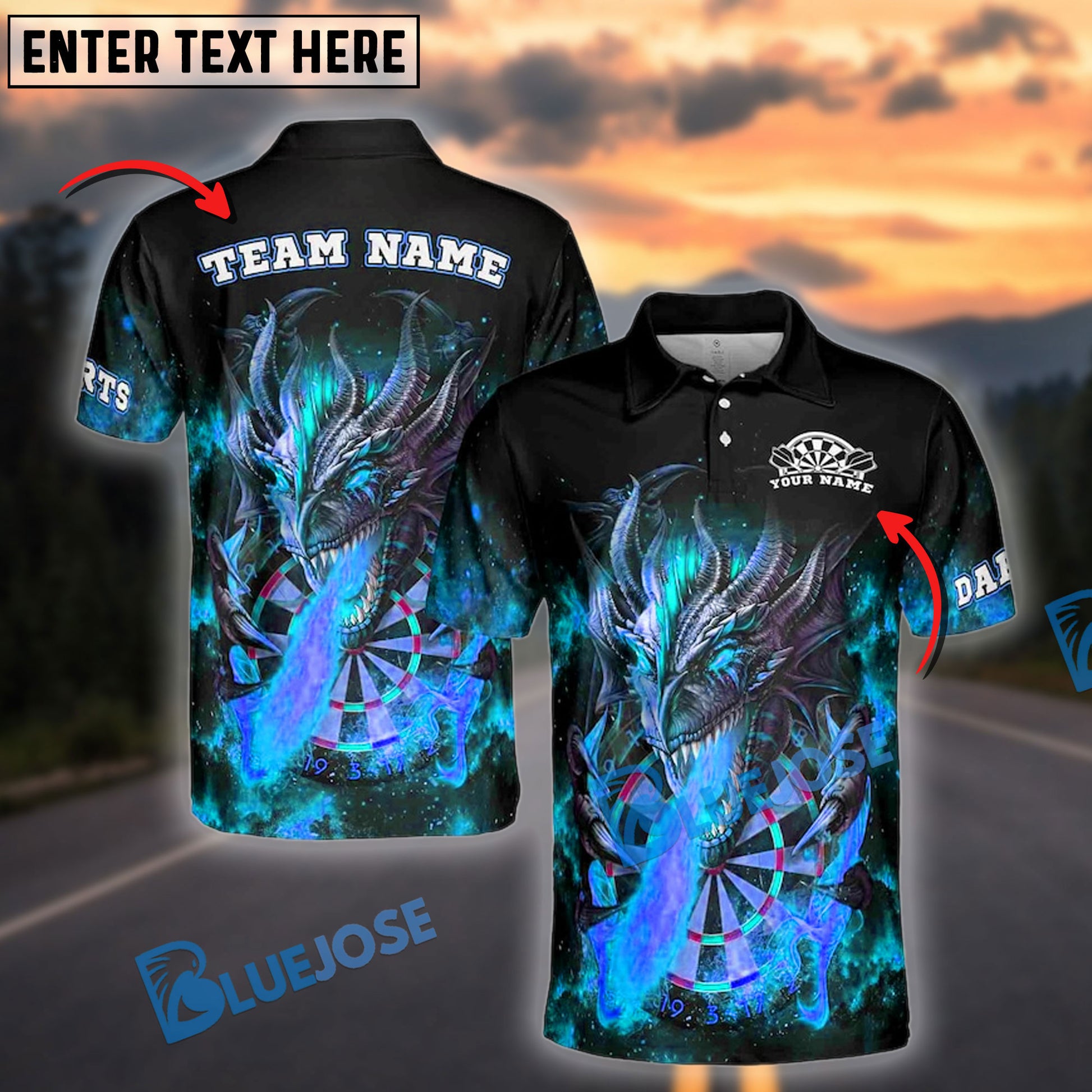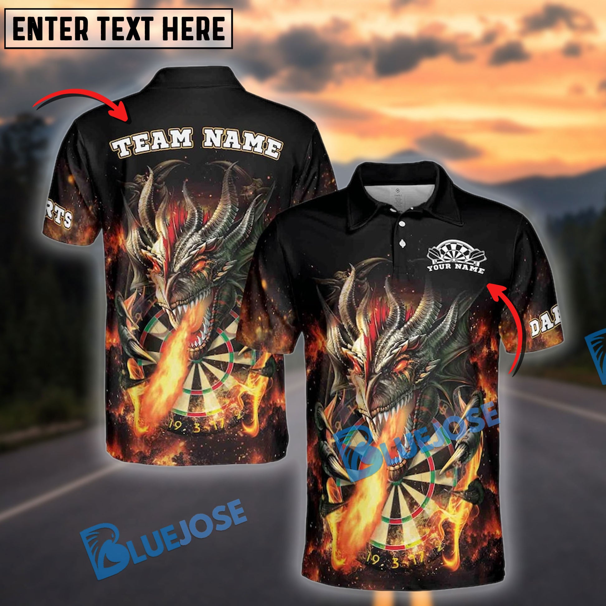 BlueJose Darts Fire Dragon Lord Personalized Name, Team Name Shirt (4 Colors)
