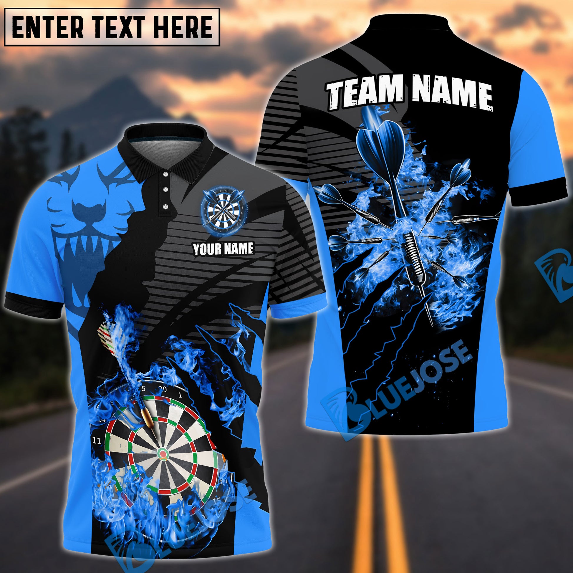 BlueJose Darts Fire Tiger Pattern Personalized Name, Team Name Shirt (4 Colors)