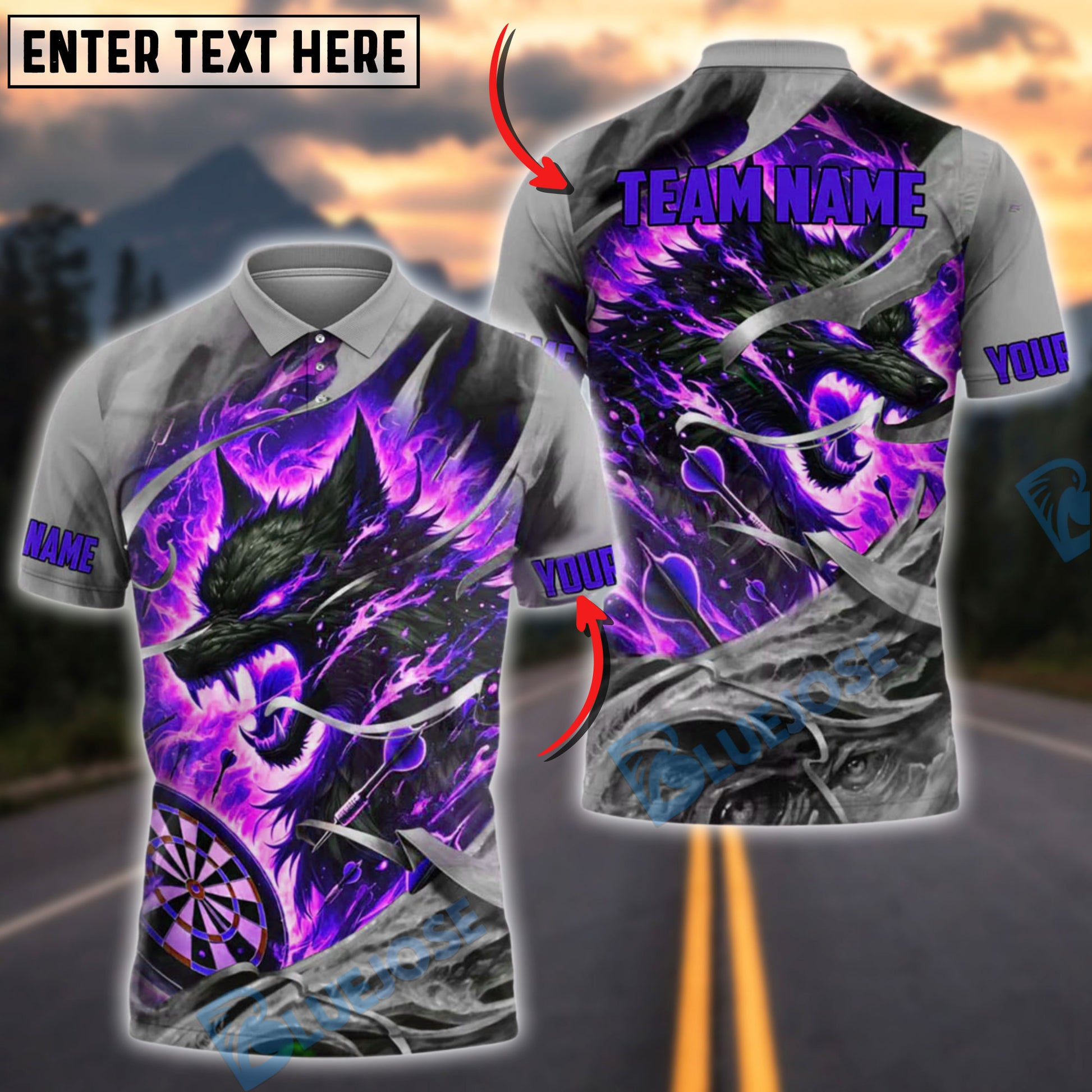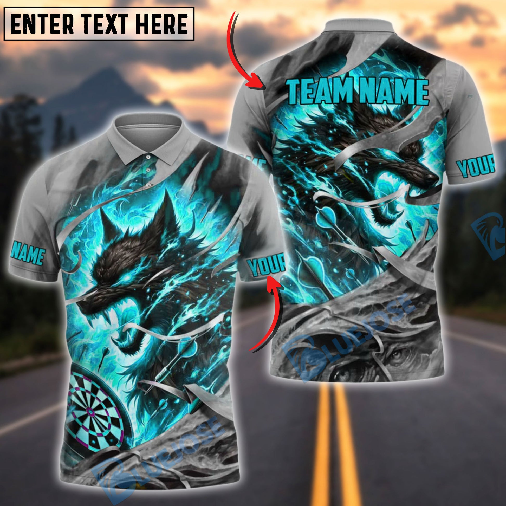 BlueJose Darts Fire Wolf Rage Customized Name, Team Name 3D Shirt (4 Colors)