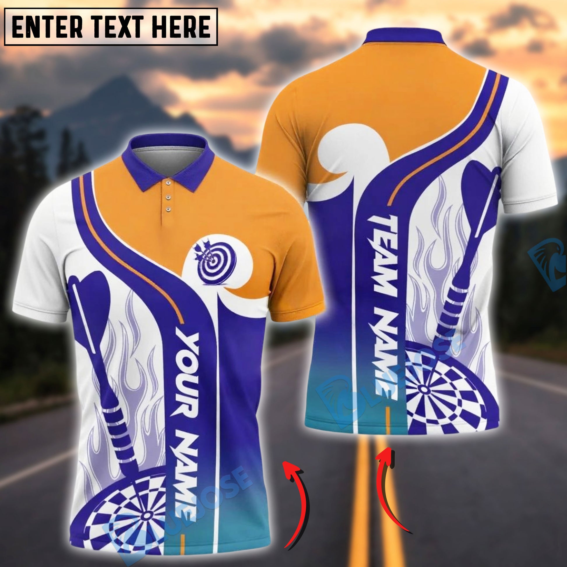 BlueJose Darts Flame Basic For Team Design Customized Name, Team Name 3D Shirt (4 Colors)