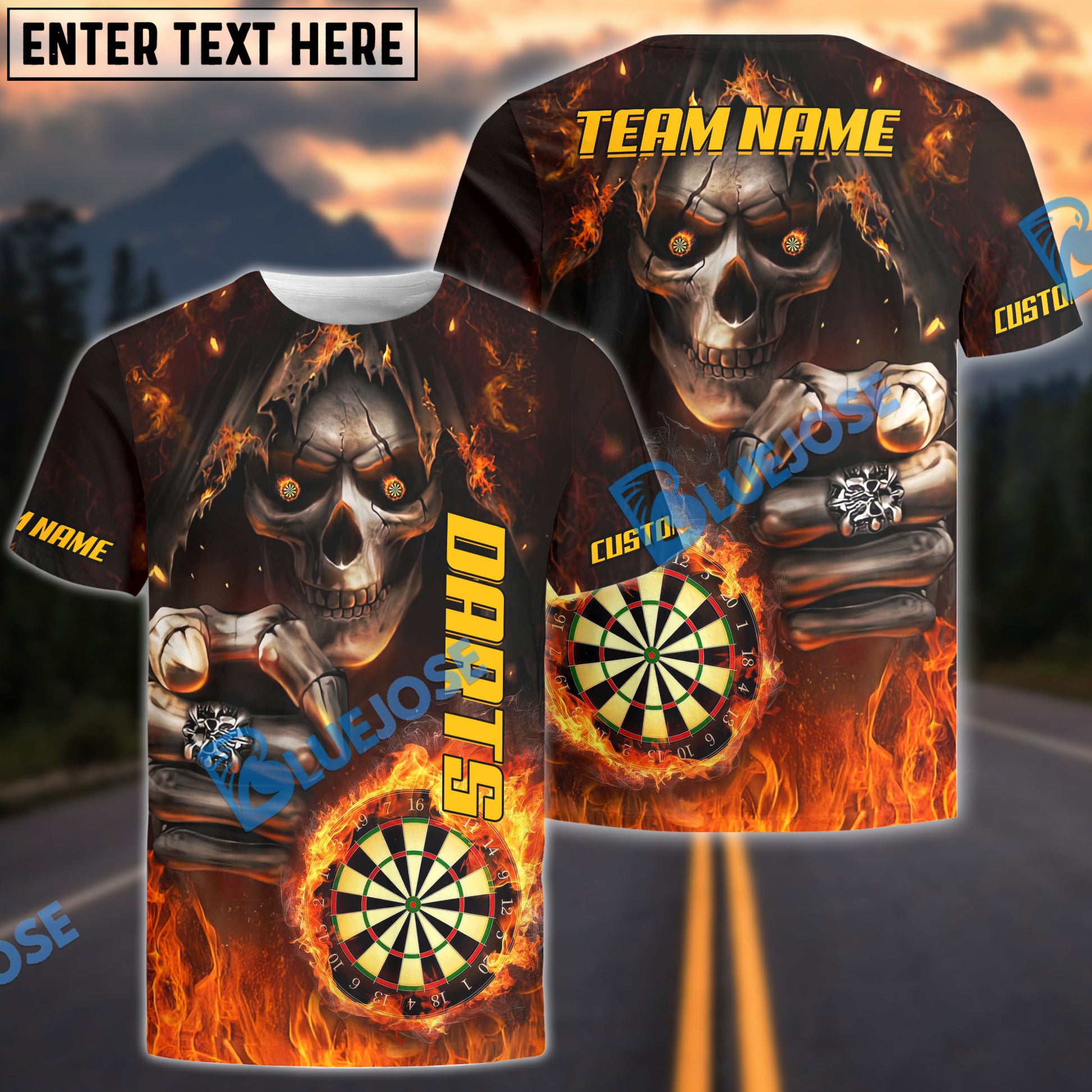 BlueJose Darts Flame Pointing Reaper Personalized Name, Team Name Shirt (4 Colors)
