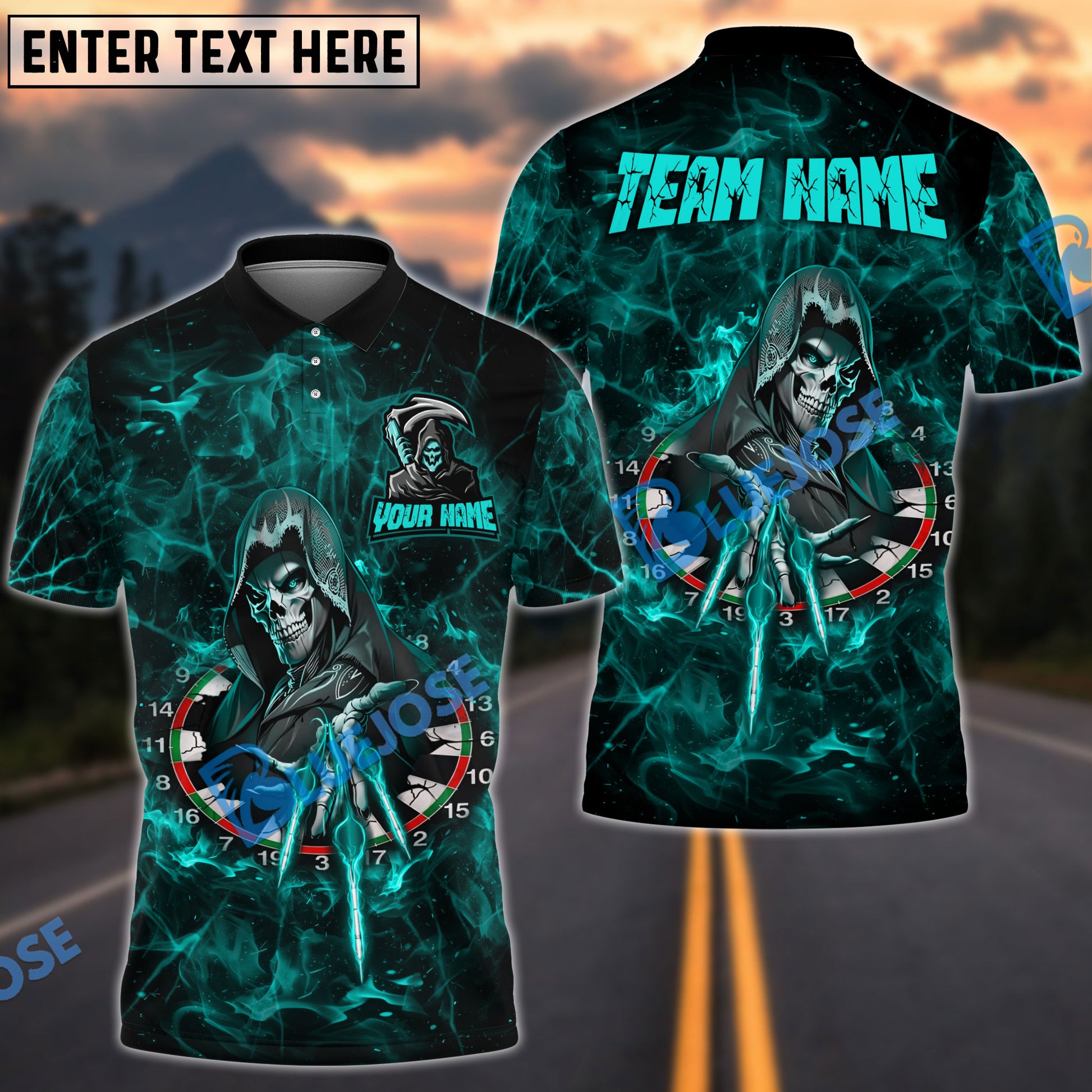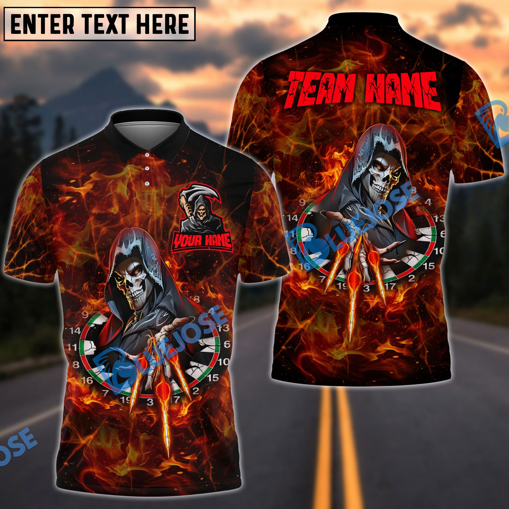 BlueJose Darts Flame Reaper Throw Personalized Name, Team Name Shirt (4 Colors)