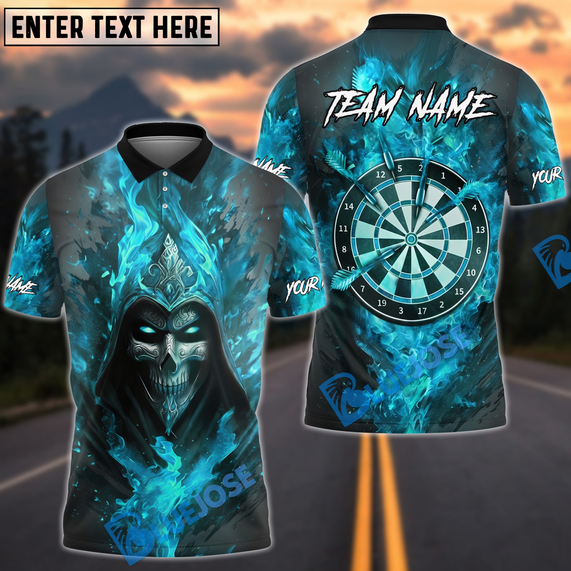 BlueJose Darts Flame Skull Fire Reaper Personalized Name, Team Name Unisex Shirt (4 Colors)
