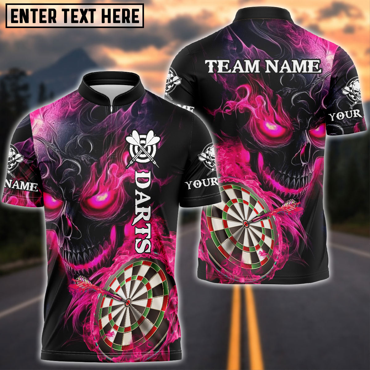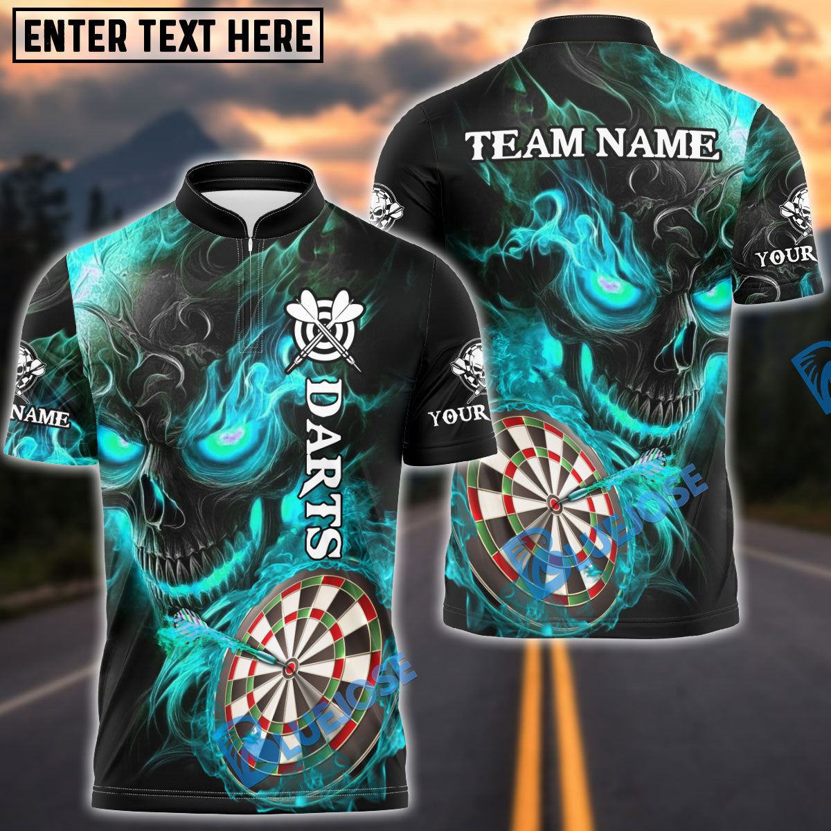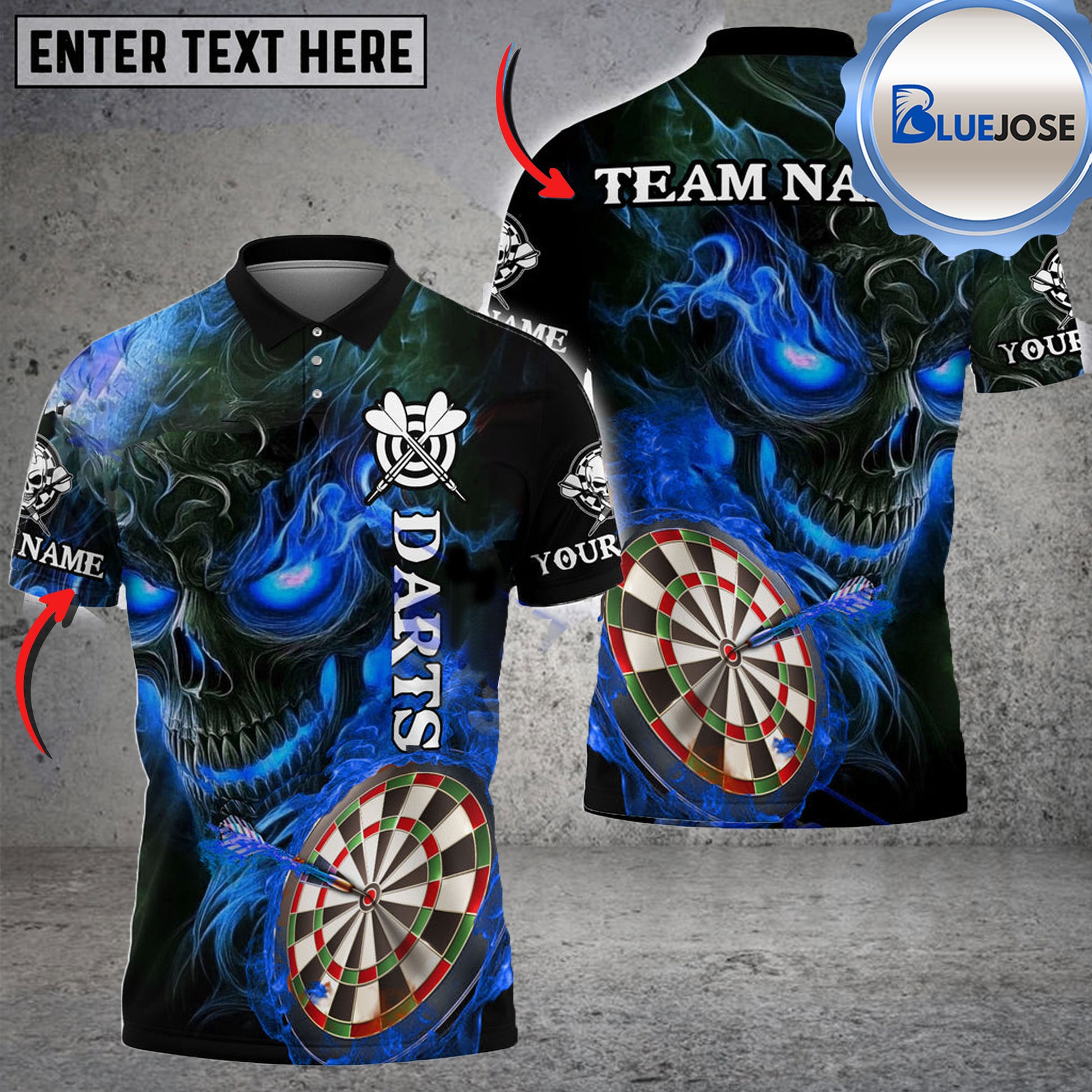 BlueJose Darts Flame Skull Pattern Personalized Name, Team Name Shirt (4 Colors)