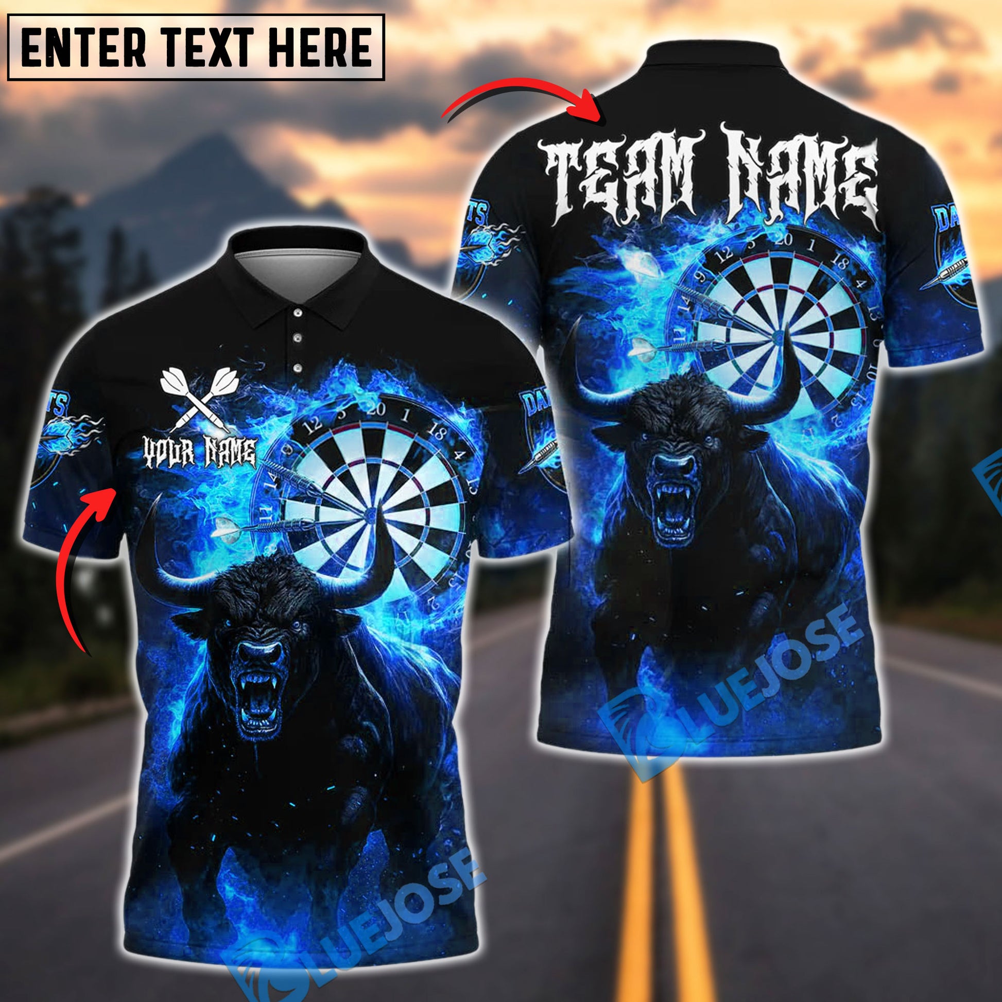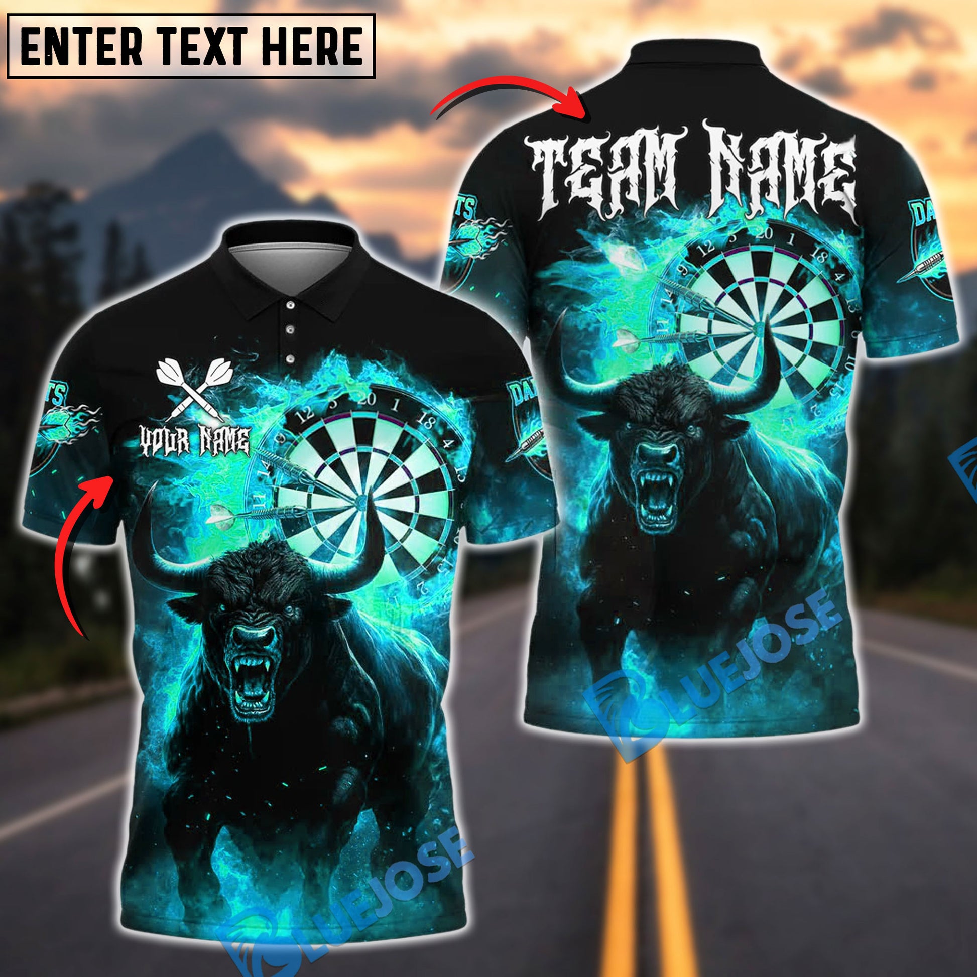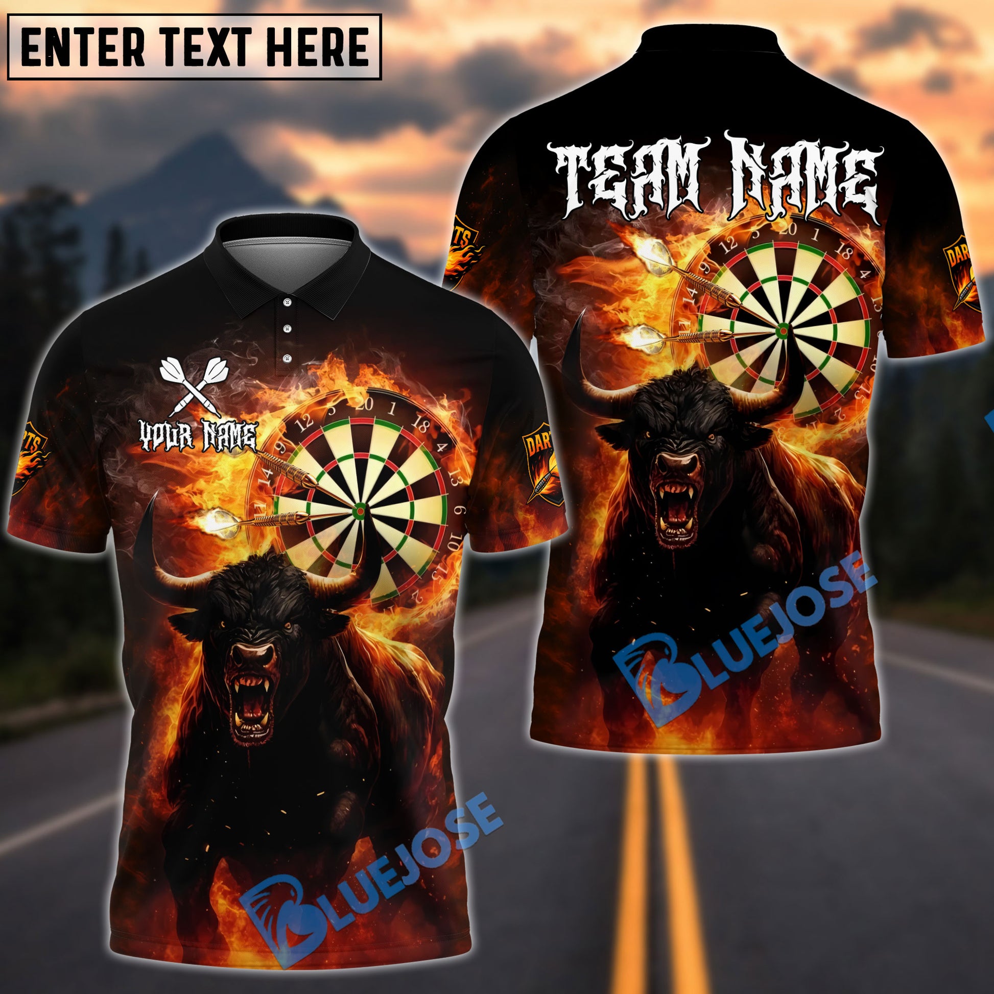BlueJose Darts Flaming Bull & Dartboard Design Customized Name, Team Name 3D Shirt (4 Colors)