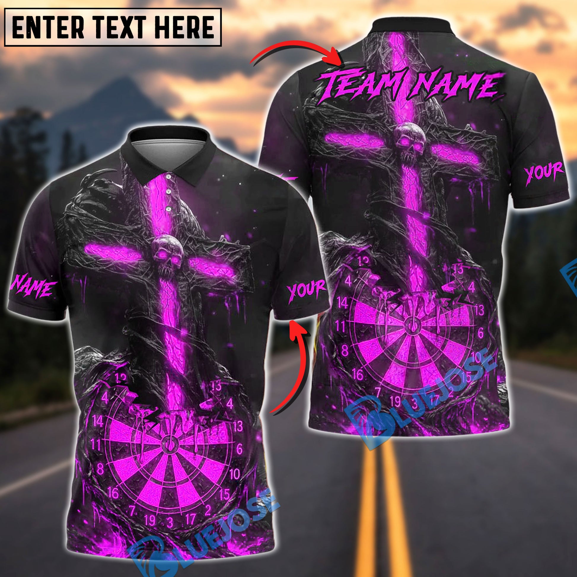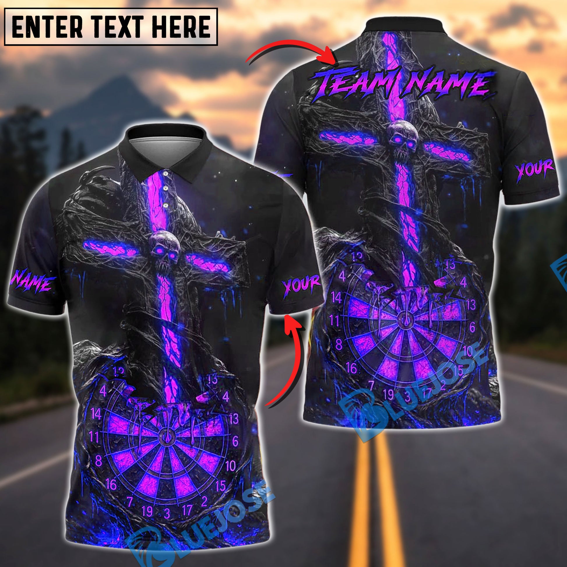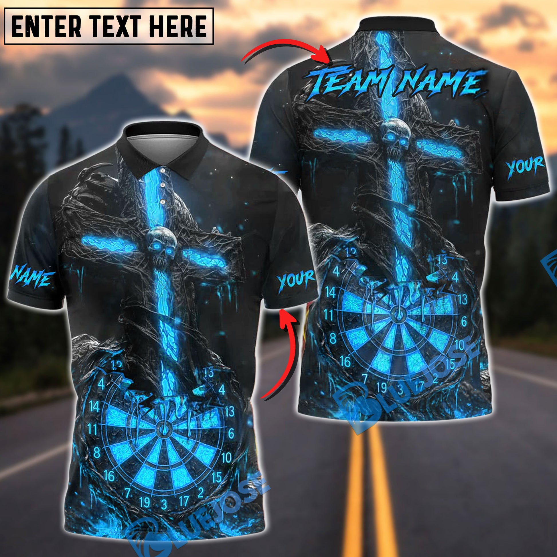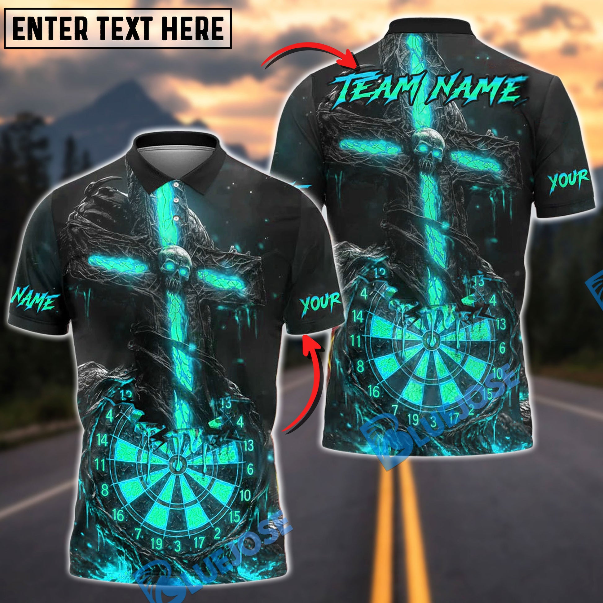 BlueJose Darts Flaming Skull Personalized Name, Team Name Shirt (6 Colors)