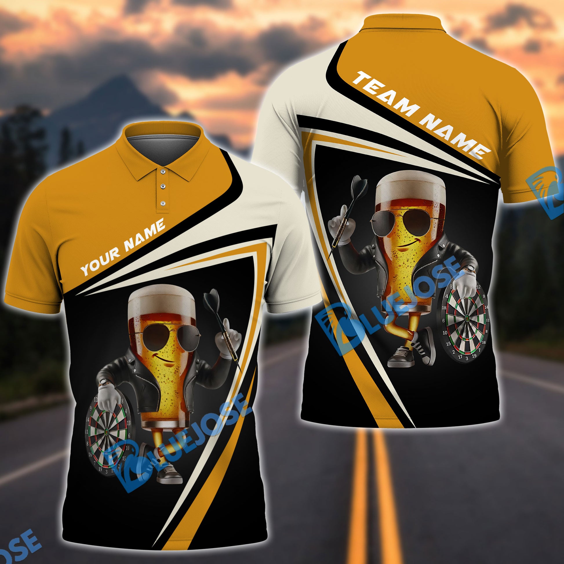 BlueJose Darts Funny Beer Multicolor Options Personalized Name Shirt (4 Colors)
