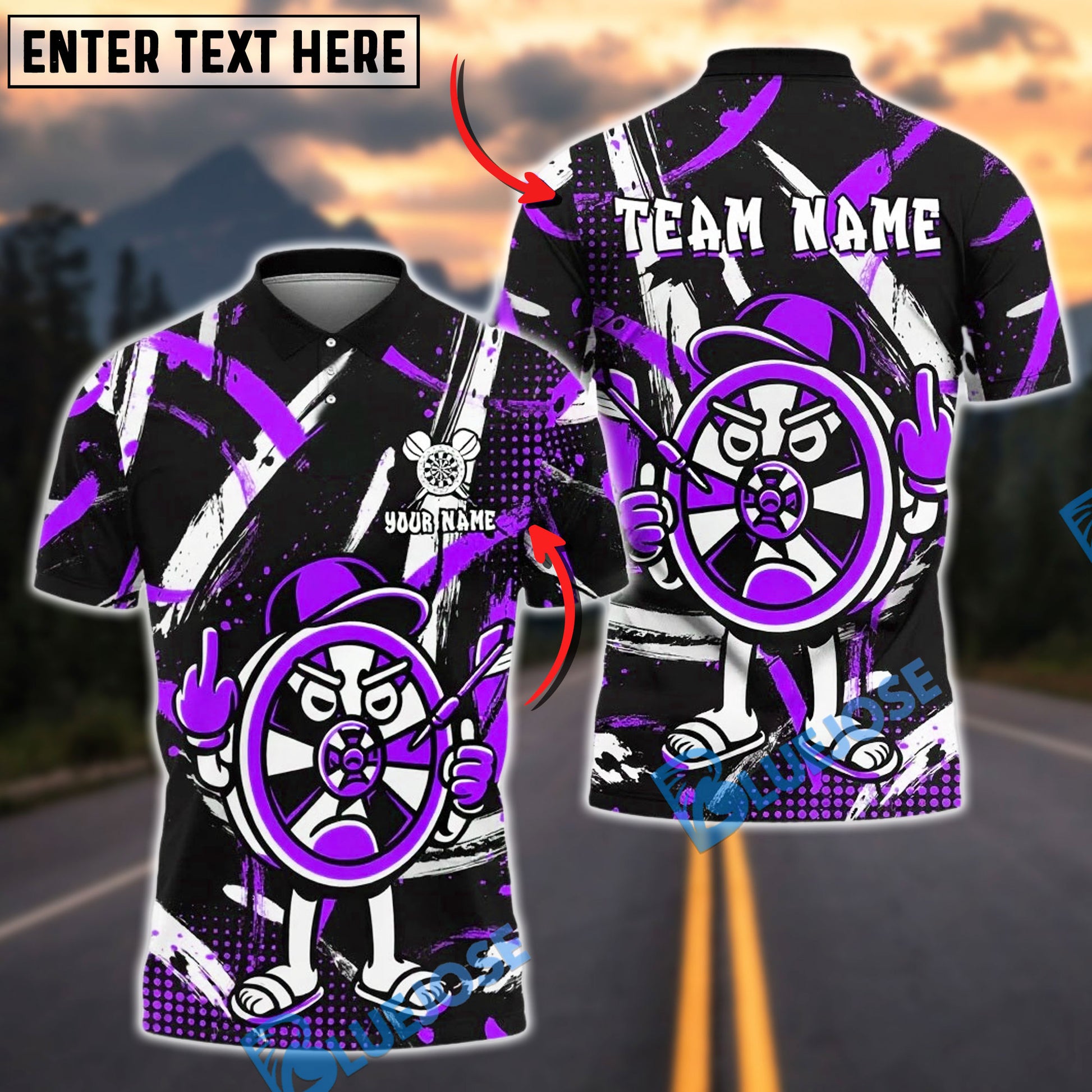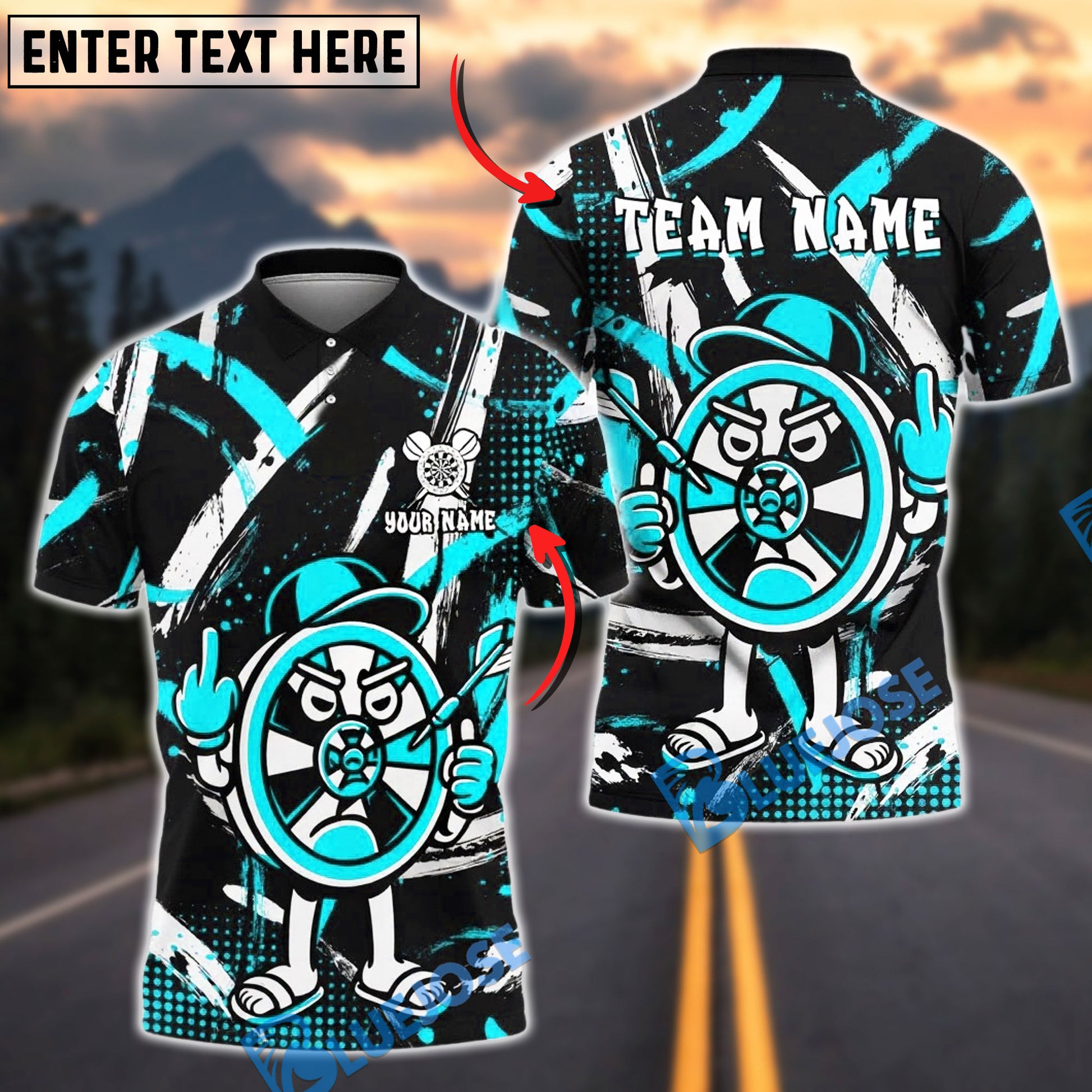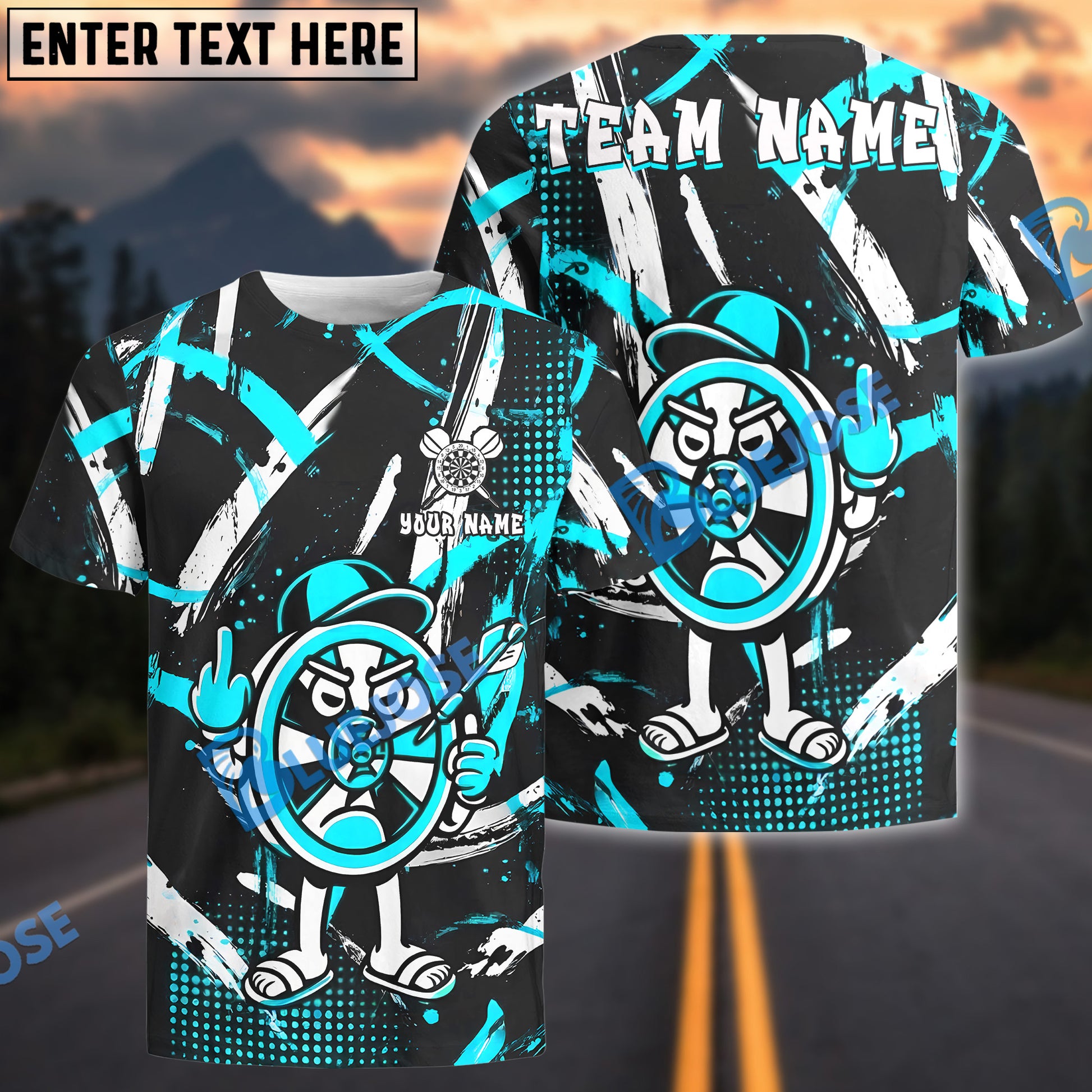 BlueJose Darts Funny Cartoon Dartboard Customized Name, Team Name 3D Shirt (4 Colors)