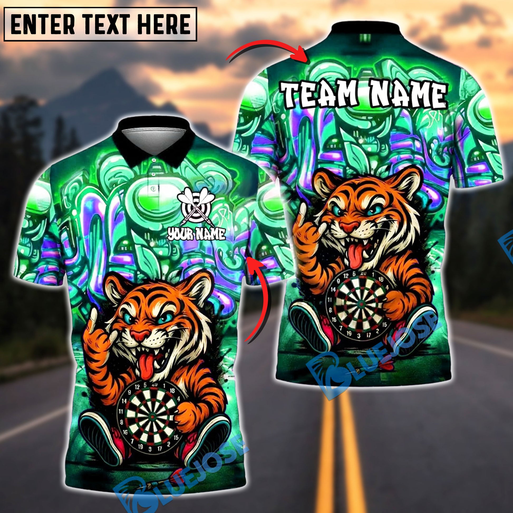 BlueJose Darts Funny Tiger Pose Customized Name, Team Name 3D Shirt (4 Colors)