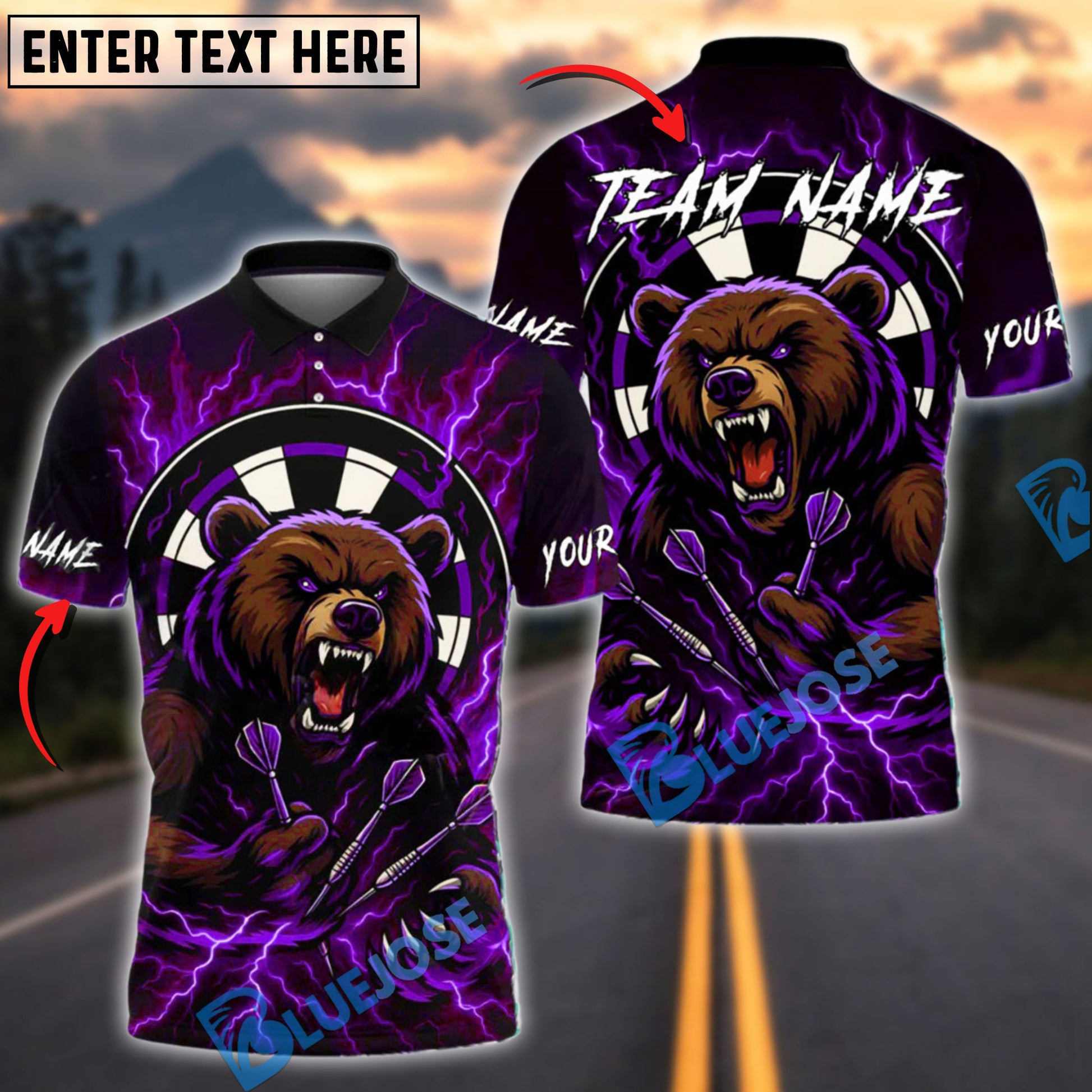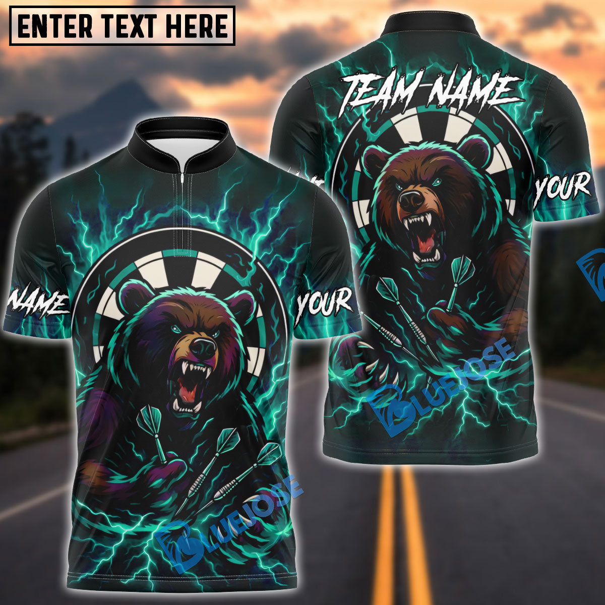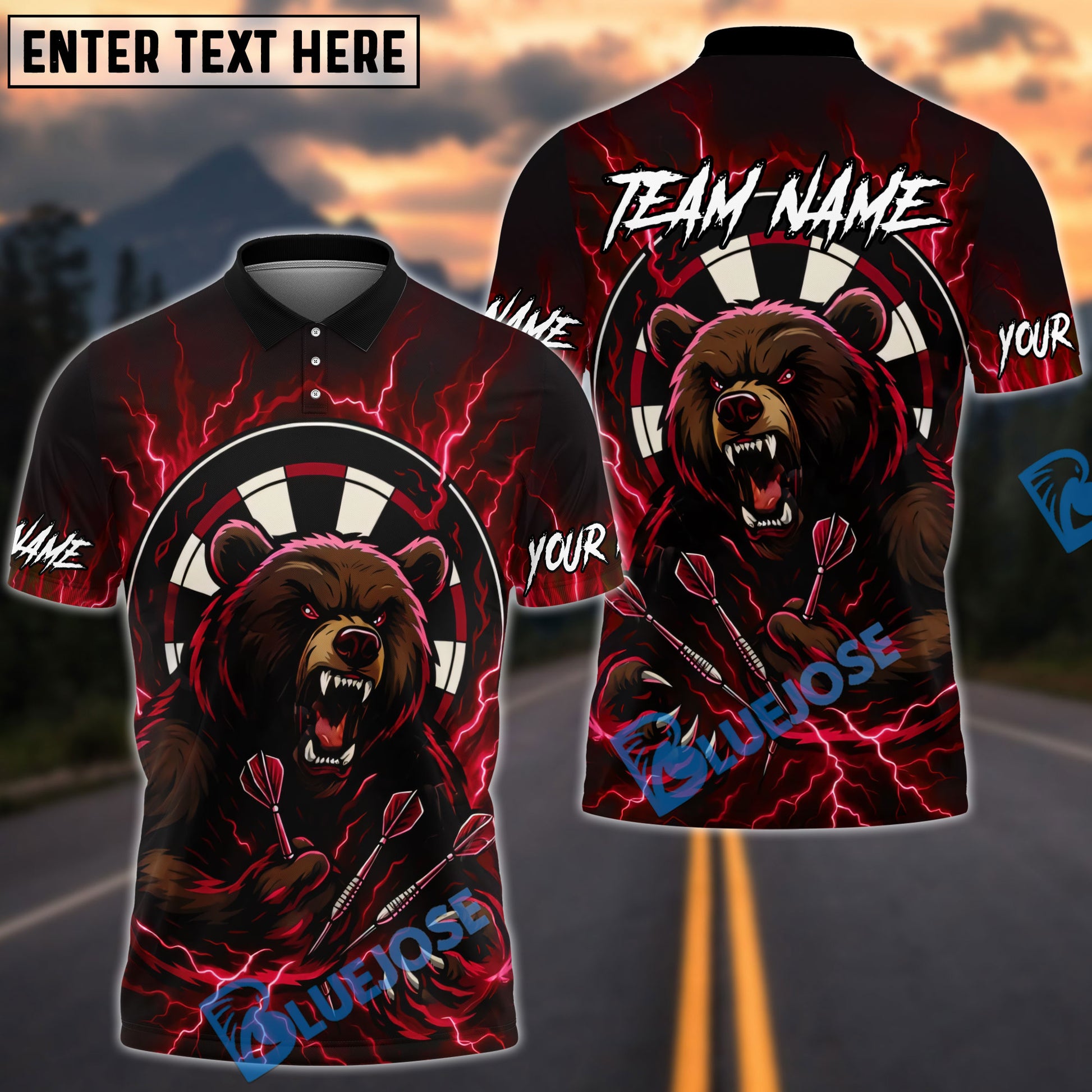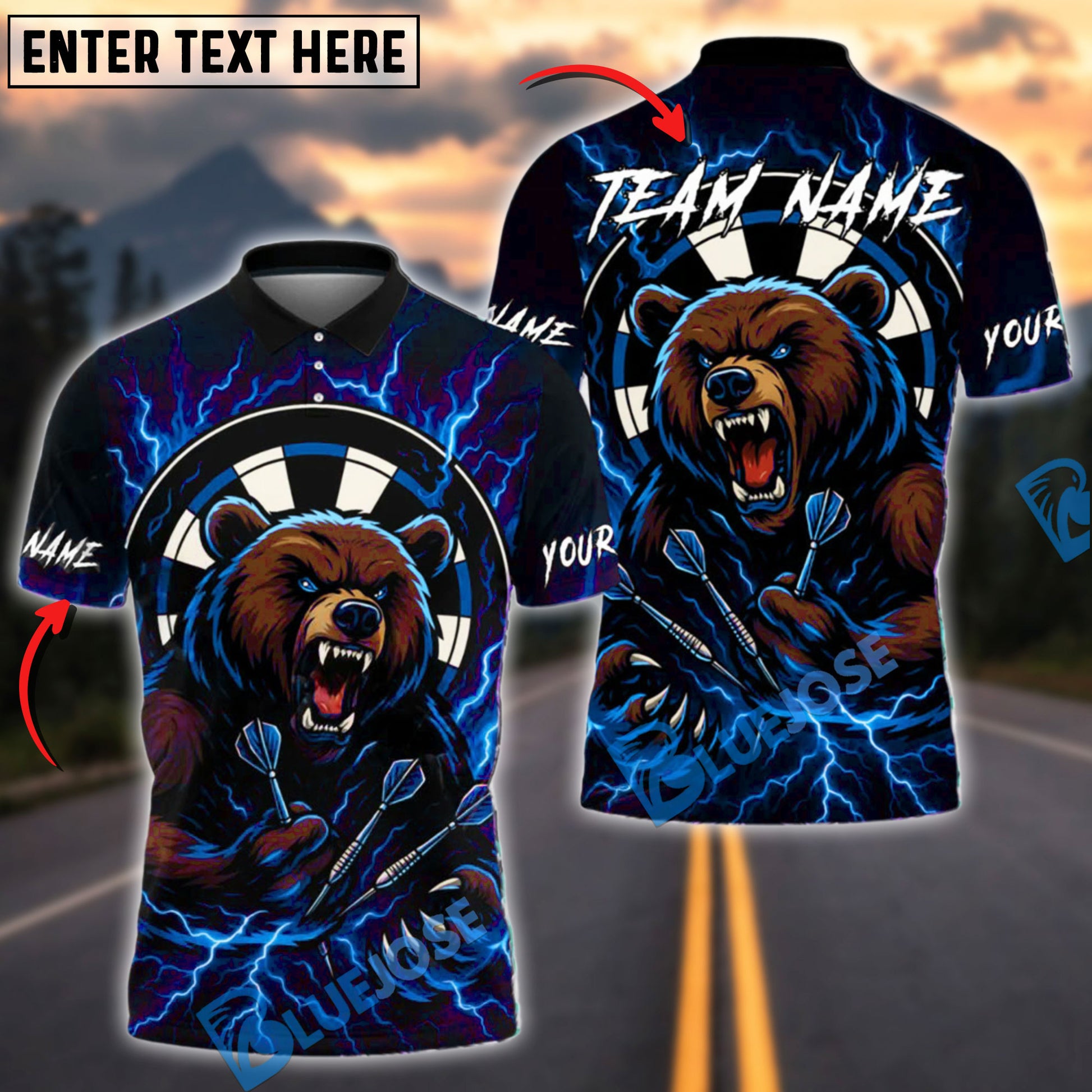 BlueJose Darts Furious Grizzly Bear Dartboard Personalized Name, Team Name Shirt (4 Colors)